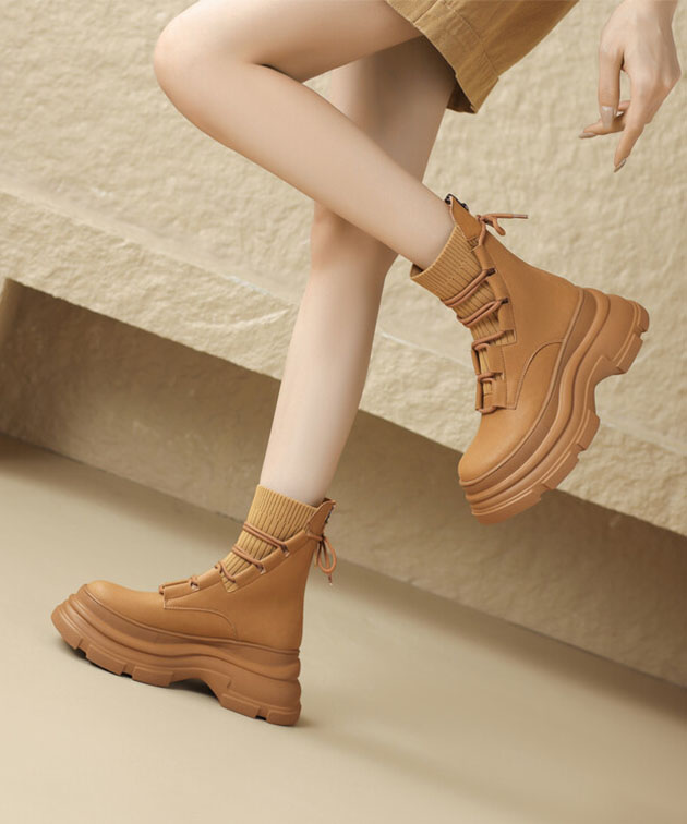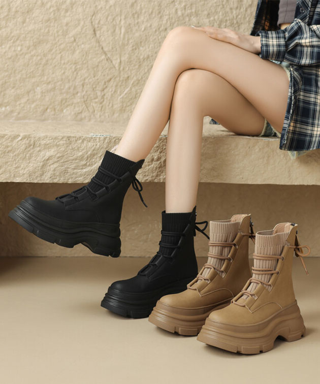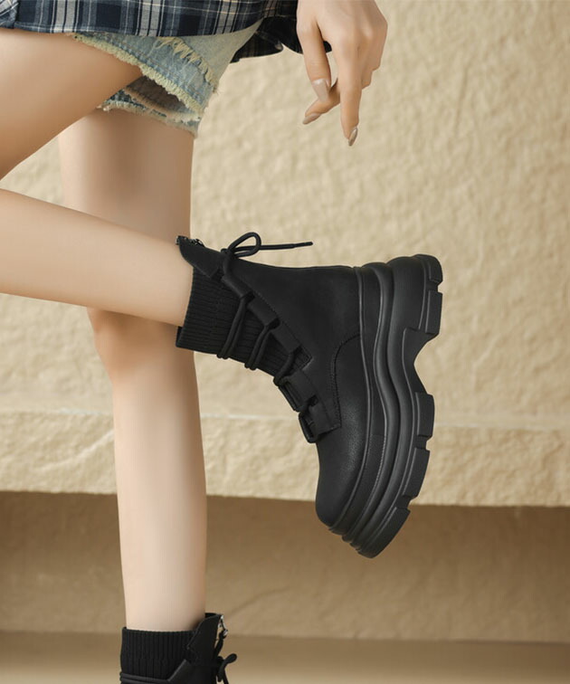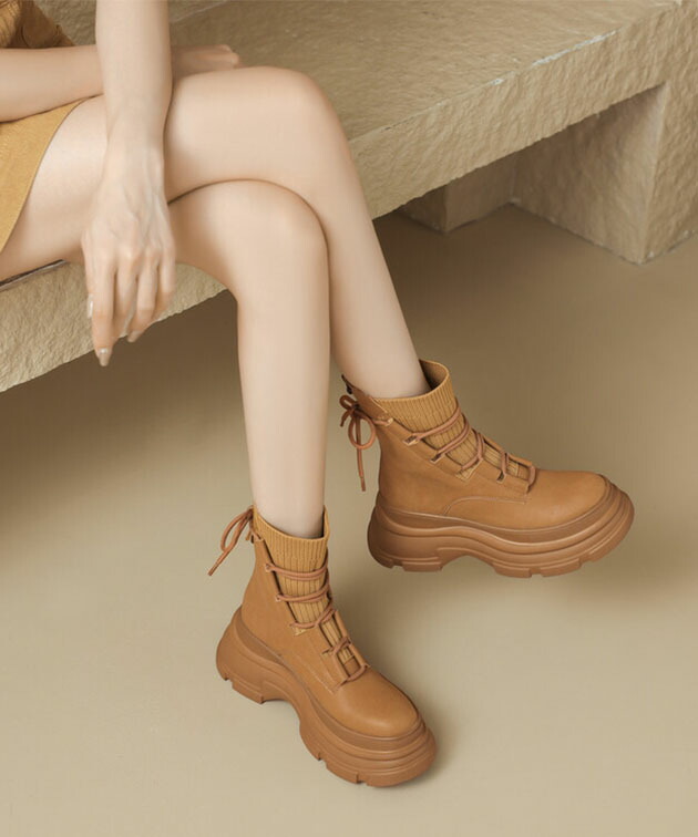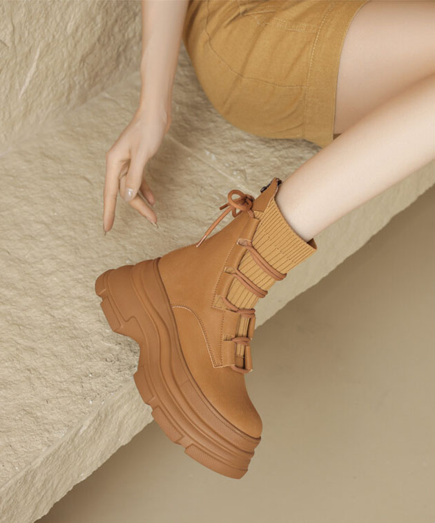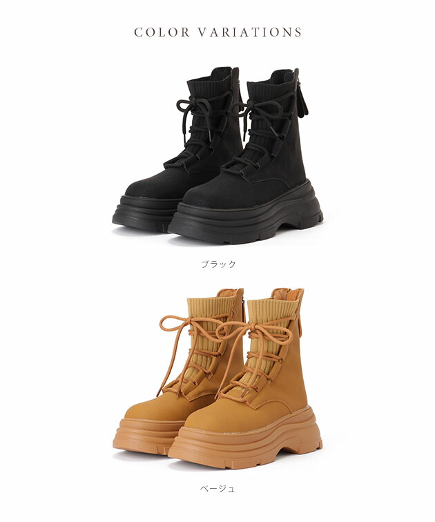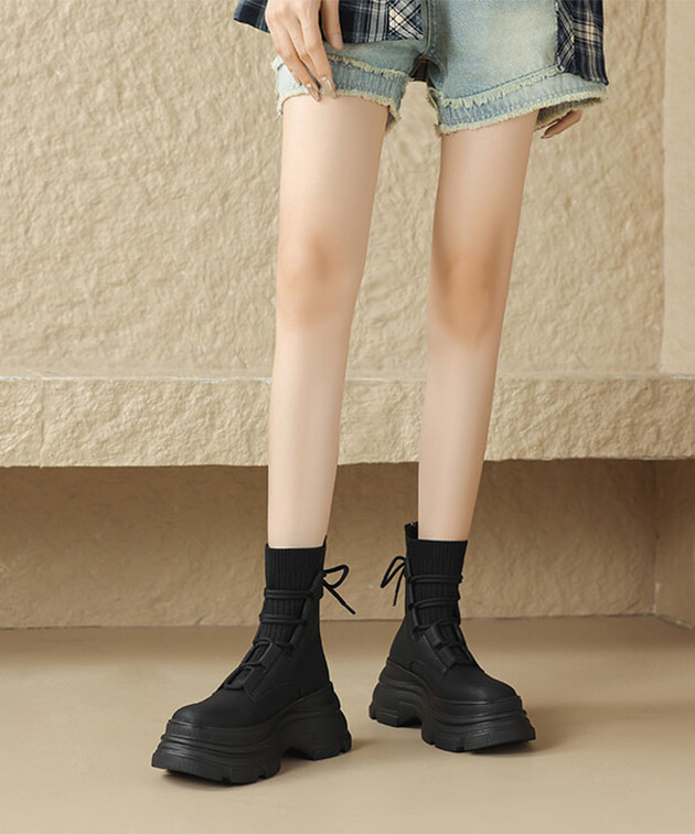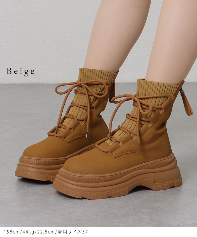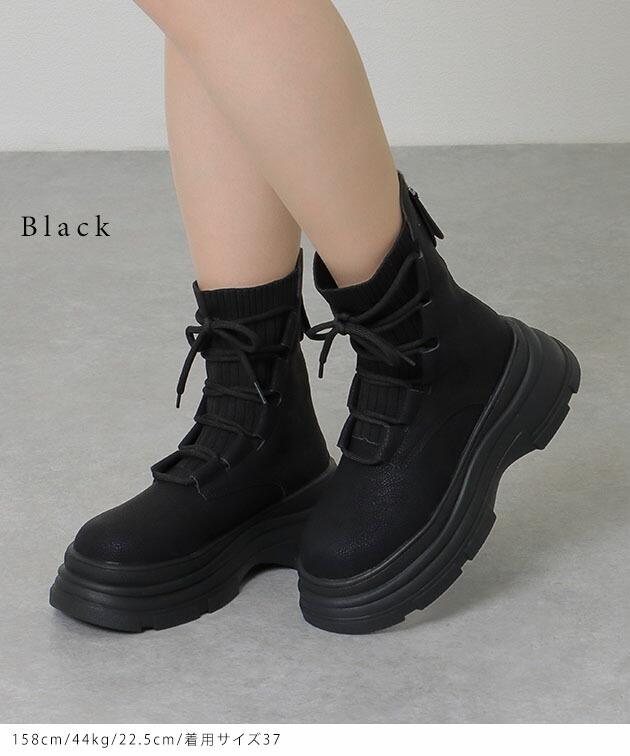 ニット ドッキング レースアップ 厚底