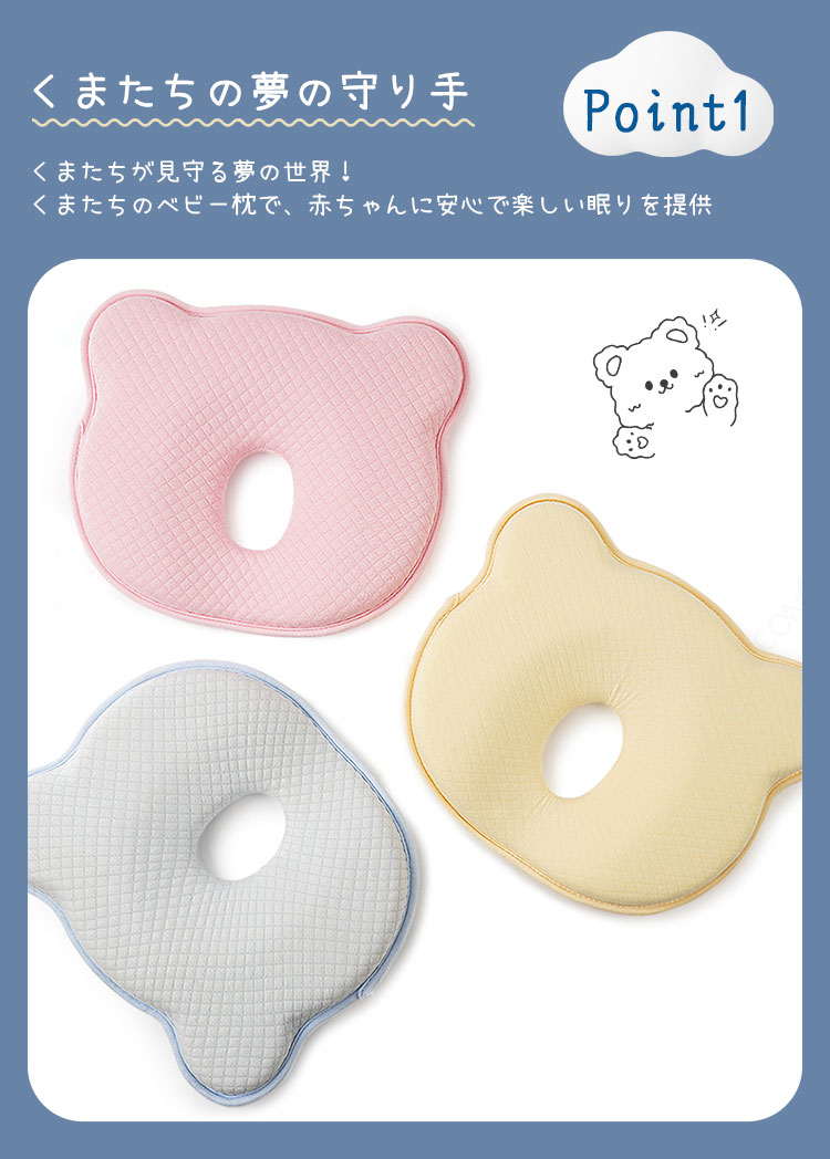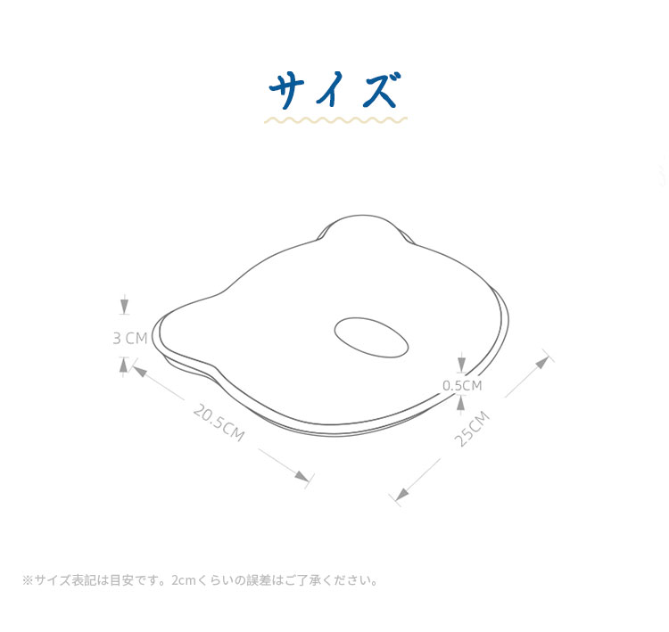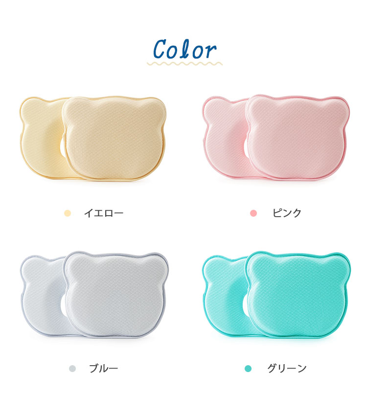 商品詳細商品名 ベビー枕サイズ 24×23×3cm素材 綿 ポリウレタン色 グリーン、ブルー、ピンク、イエロー生産国 MADE IN PRC