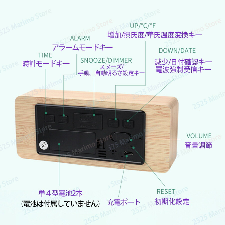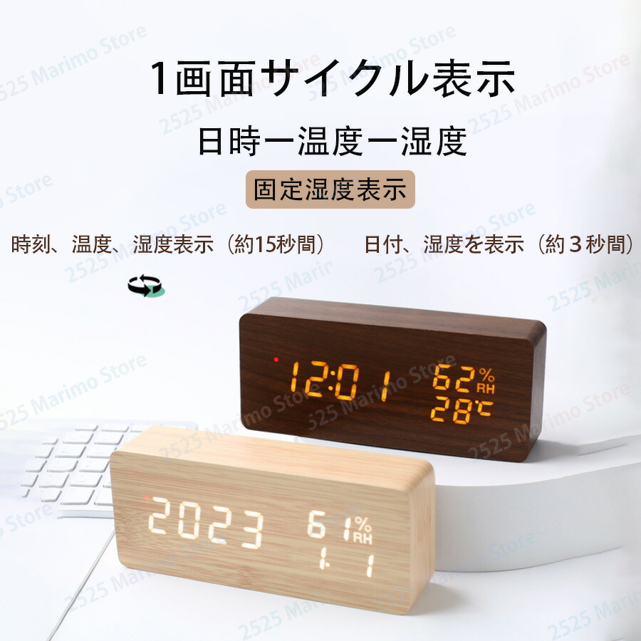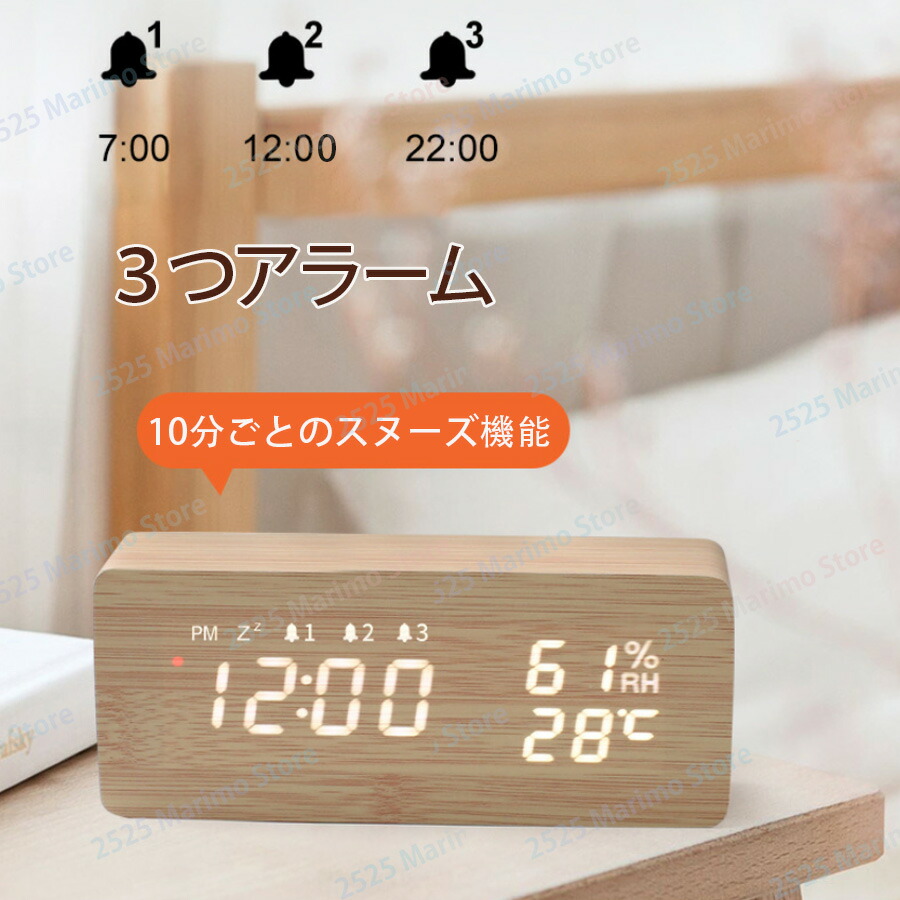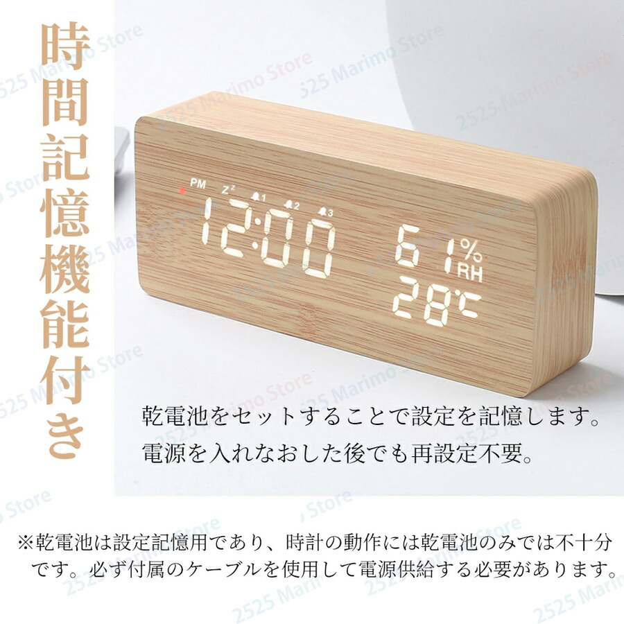 設定記憶 輝度調整 おしゃれ 時計 日本語説明書付き クロック アラームクロック アラーム時計 テーブルクロック ナチュラル 木目 夜でも見える 子供 かわいい プレゼント リビング
