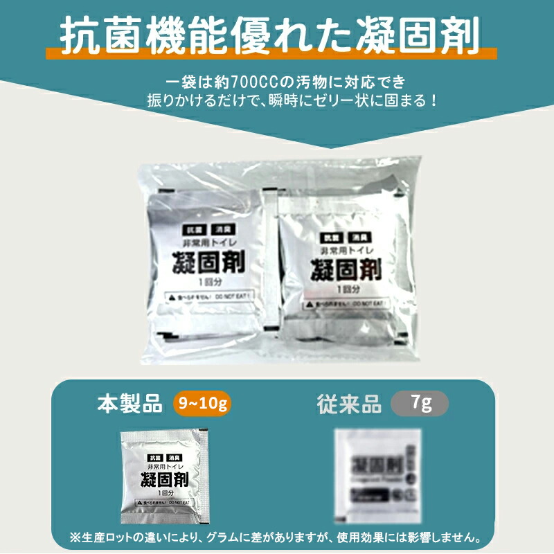 ●排泄物の量によって固まりにくい場合は凝固剤を追加でご使用ください。商品名 簡易トイレ 50回分 非常用トイレ 15年保存 防災グッズ 携帯トイレ 災害用トイレ 介護用 簡易トイレセット50回分 凝固剤 防災トイレ コンパクト 災害用 ポータブルトイレ アウトドア 介護用 避難 災害時 断水時 地震 車 渋滞 洋式 和式 大きいサイス 通用