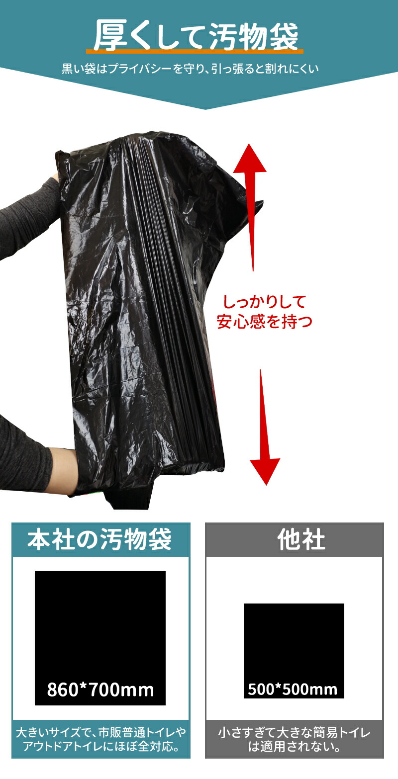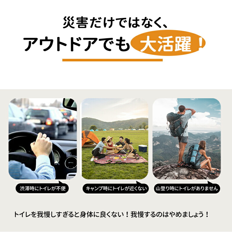突然災害、車の渋滞、アウトドアの際にあると助かる 汚物をしっかり吸収、10枚消臭袋付きで匂いも心配なく 台風 大口 ポータブルトイレ