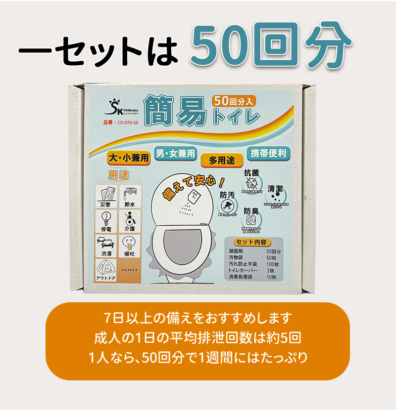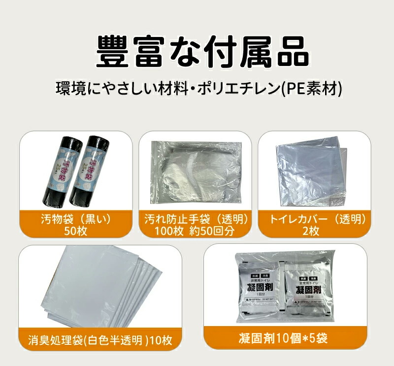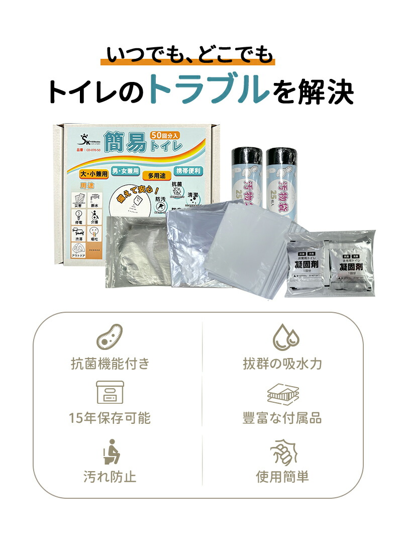 商品名 簡易トイレ 50回分 非常用トイレ 15年保存 防災グッズ 携帯トイレ 災害用トイレ 介護用 簡易トイレセット50回分 凝固剤 防災トイレ コンパクト 災害用 ポータブルトイレ アウトドア 介護用 避難 災害時 断水時 地震 車 渋滞 洋式 和式 大きいサイス 通用