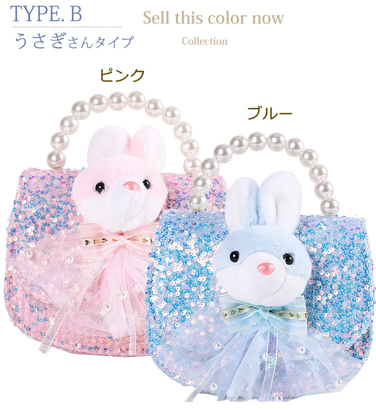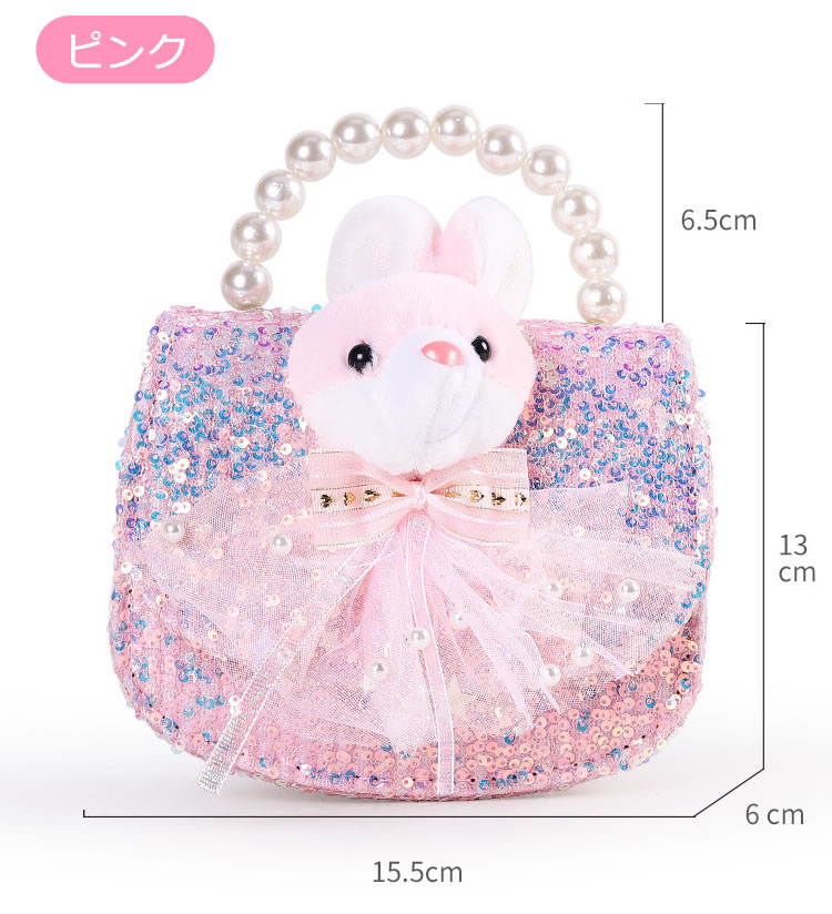 スパンコール ぬいぐるみ パール りぼん ピンク ブルー 子どもドレス こども フォーマル ドレス セミフォーマル バック bag ロングチェーン付き