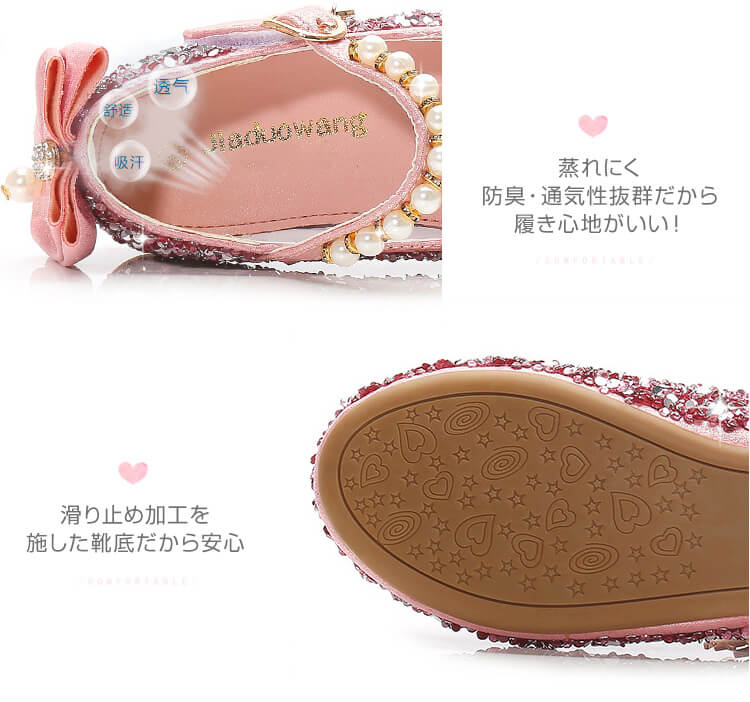 結婚式・おうち遊びやパーティー、会(パーティー)、発表会、記念日も、普段の日もお子様といつまでも一緒に楽しんでいただけるキッズ用靴です。