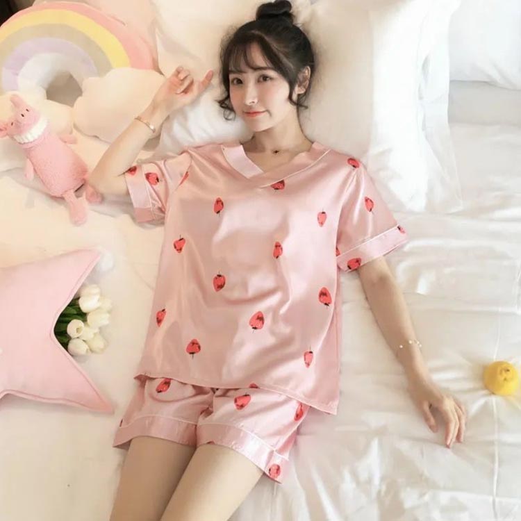 部屋着 サテン 半袖 寝巻 ルームウエ
