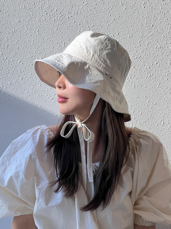 バケットハット リボン タック紐 ストリング バケットハット サイズ調整 レディース用 トレンド カジュアル スタイリッシュ ナチュラル デートコーデ ビンテージ リラックス 韓国ファッション 春 夏