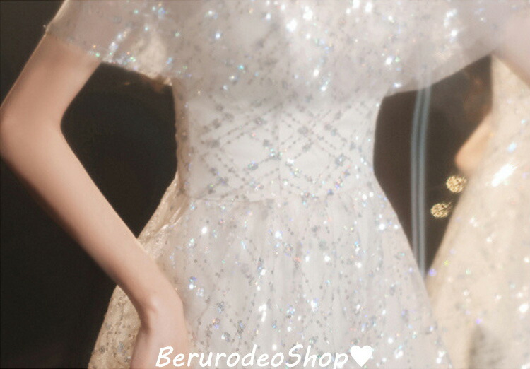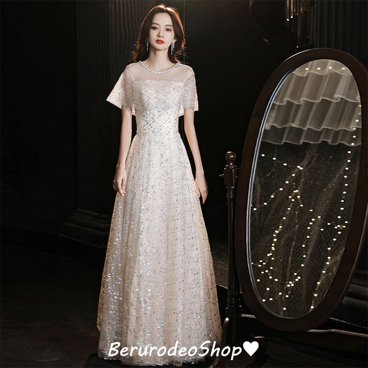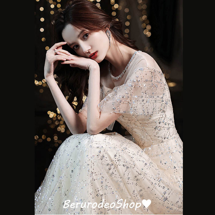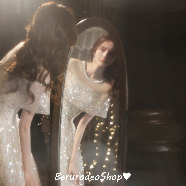 イブニングドレス キラキラドレス スパンコール ラインストーン キレイめ 発表会ドレス ロングドレス パーティードレス シャンパン色 結婚式ドレス 二次会ドレス お呼ばれ