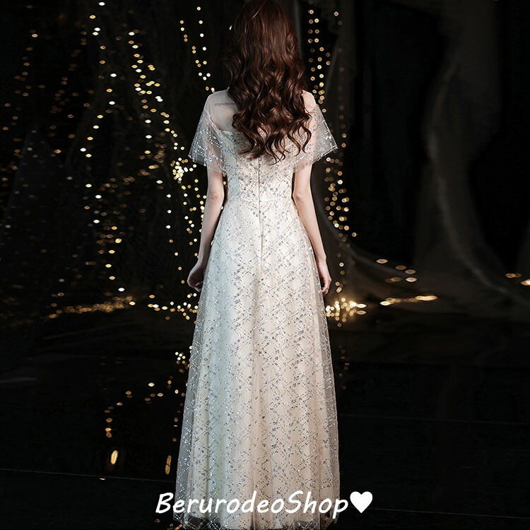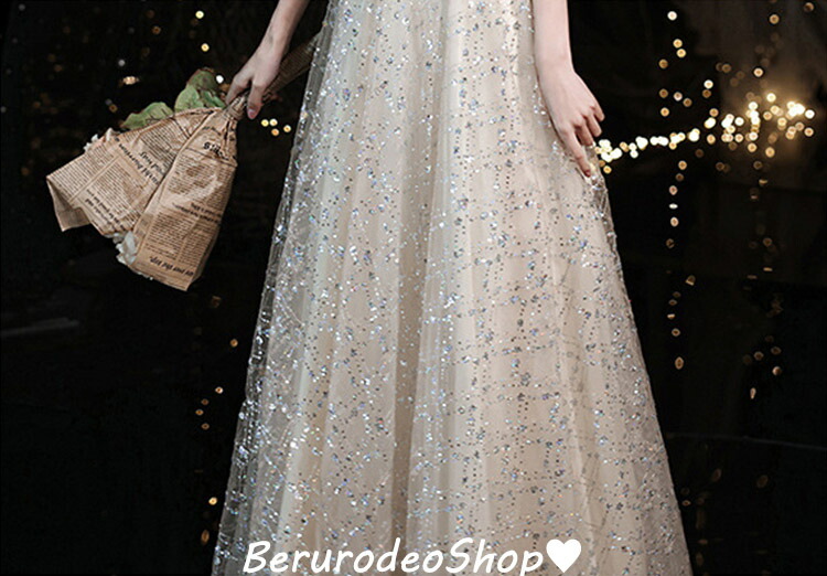 イブニングドレス キラキラドレス スパンコール ラインストーン キレイめ 発表会ドレス ロングドレス パーティードレス シャンパン色 結婚式ドレス 二次会ドレス お呼ばれ 送料無料
