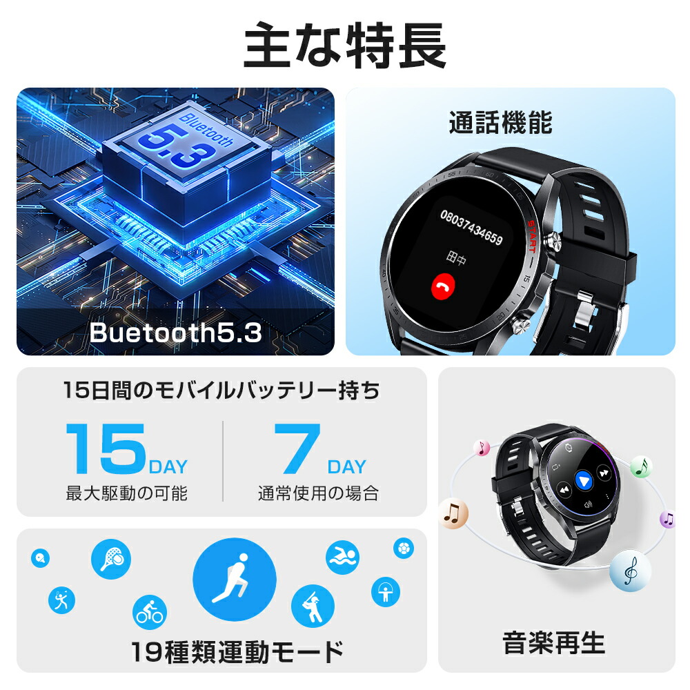 スマートウォッチ 通話機能付き Bluetooth通話 健康管理 遠隔カメラ ストップウォッチ アラーム 消費カロリー 運動距離 メンズ レディース 丸型 男女兼用 父 母 ギフト プレゼント