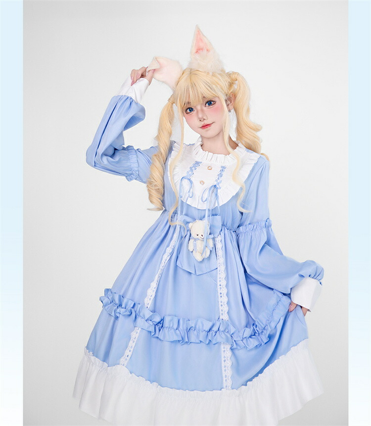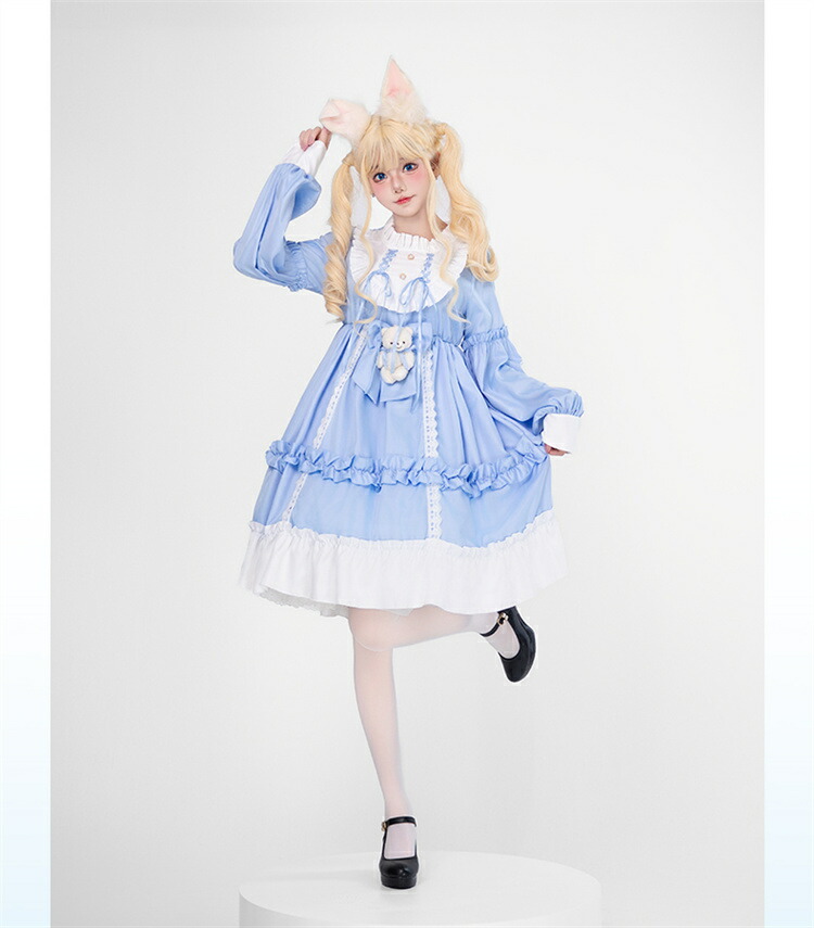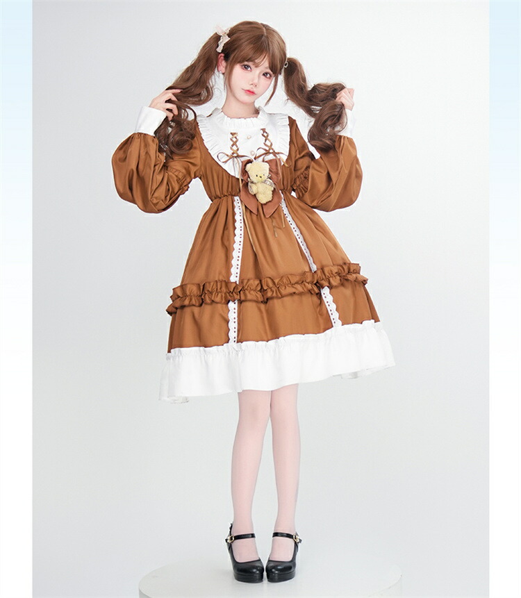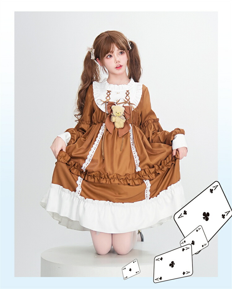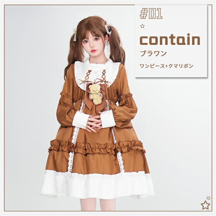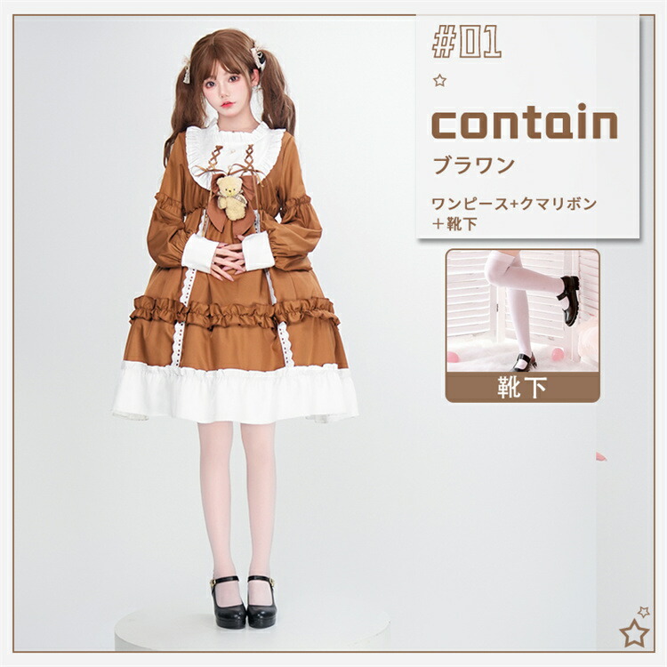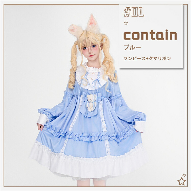 商品内容: ブルーワンピース+クマリボン ブルーワンピース+リボン+靴下 ブラウンワンピース+クマリボン ブラウンワンピース+リボン+靴下