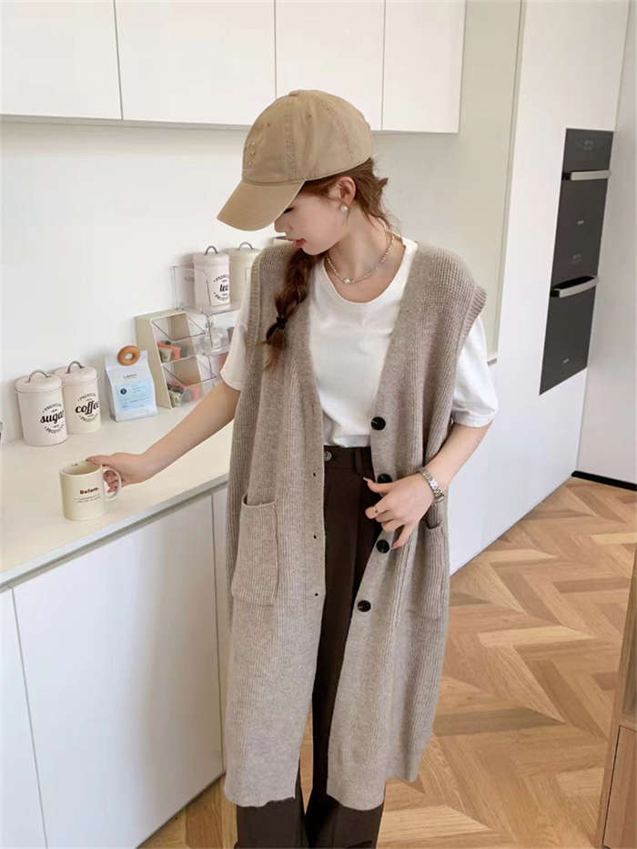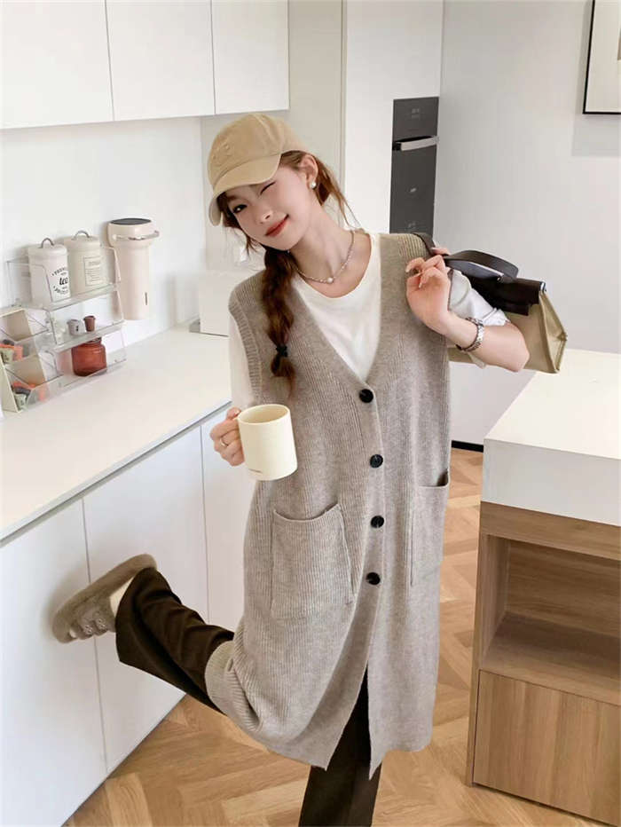 トレンドのニットジレに体型カバーが叶う