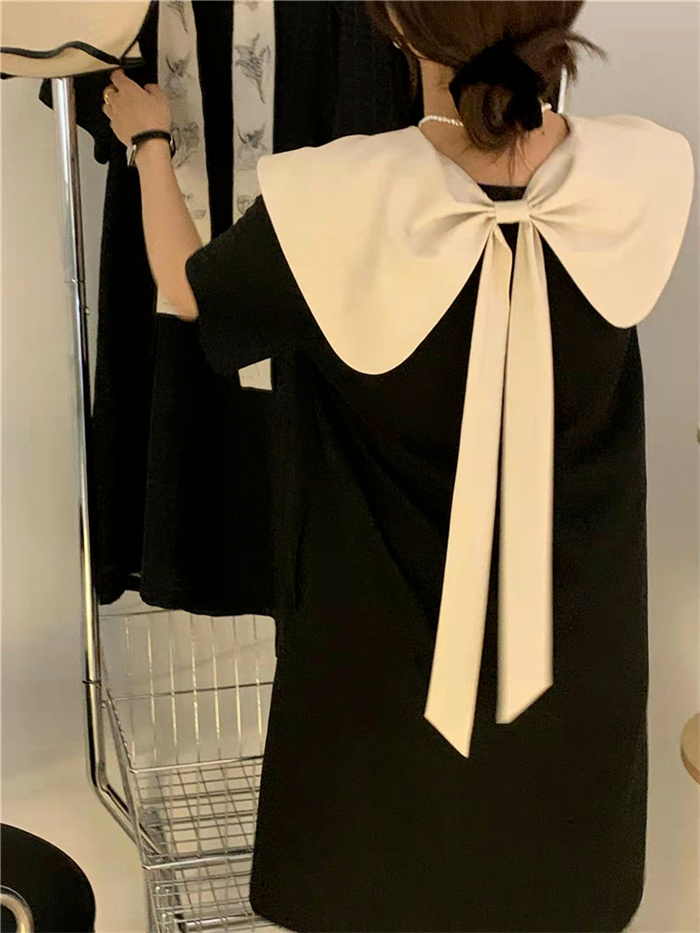 シアースリーブ ドッキングシャツ ボウタイシャツブラウス