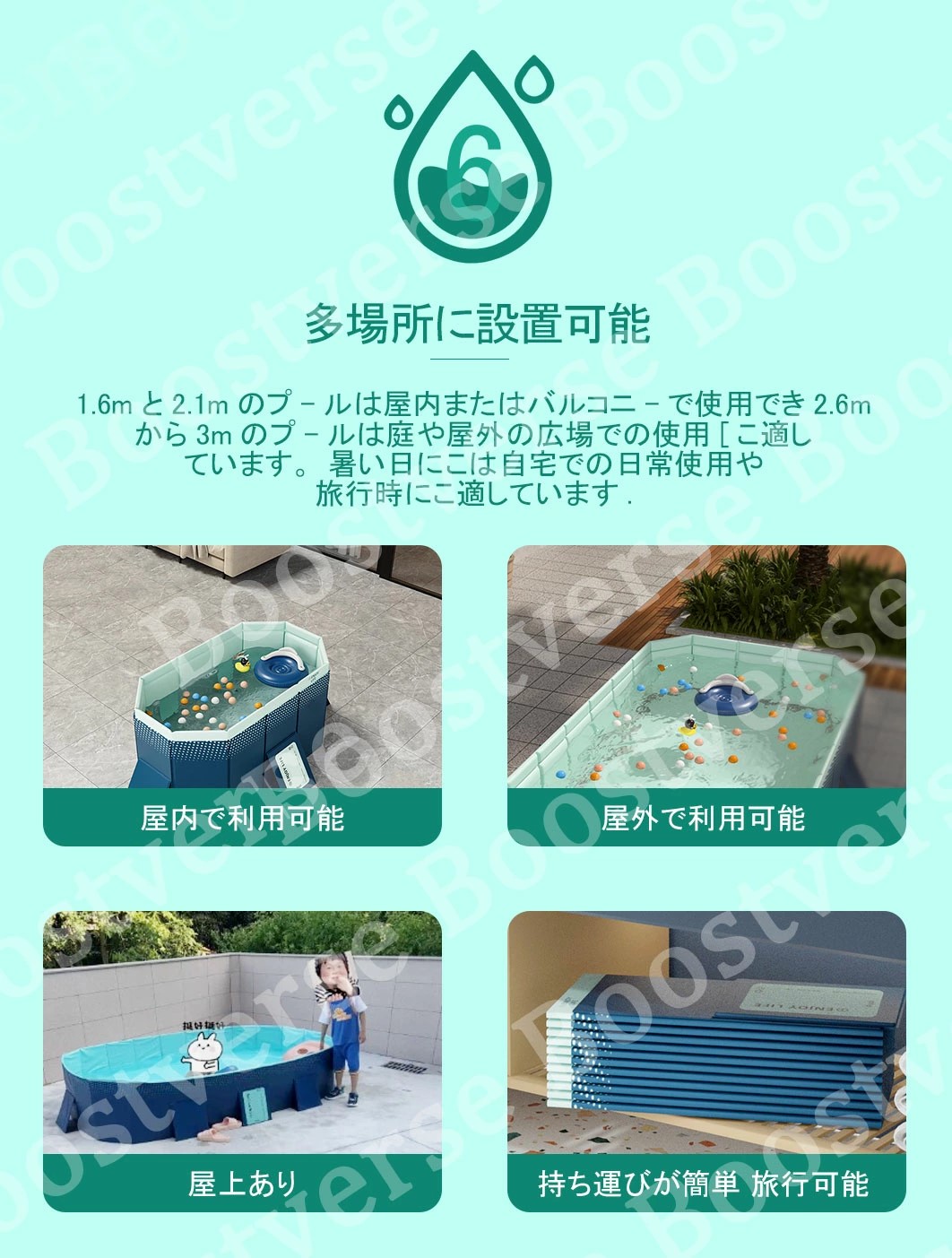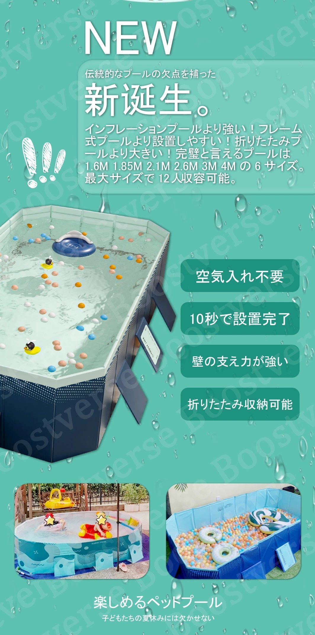 【広範な用途】:屋外プール、バスタブ、おもちゃの箱、1台3役で1年中使える!お子様の水遊び、大きな物を洗う、ペットバス、おもちゃ入れ、まだまだ多くの用途があります。屋内、お庭、ビーチ、屋外などいつでもどこでも簡単に使える。