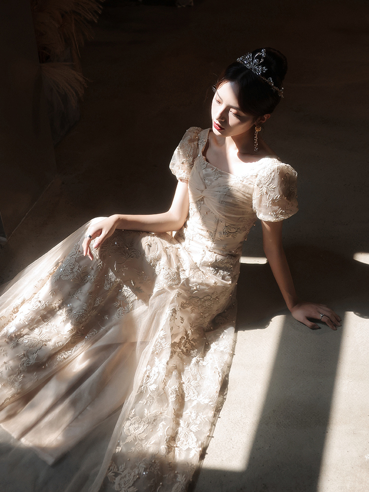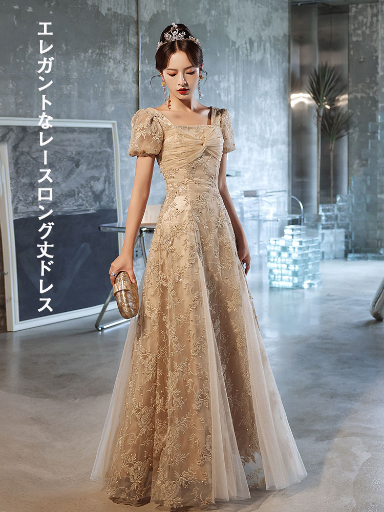 パーティードレス 総レース ロング丈