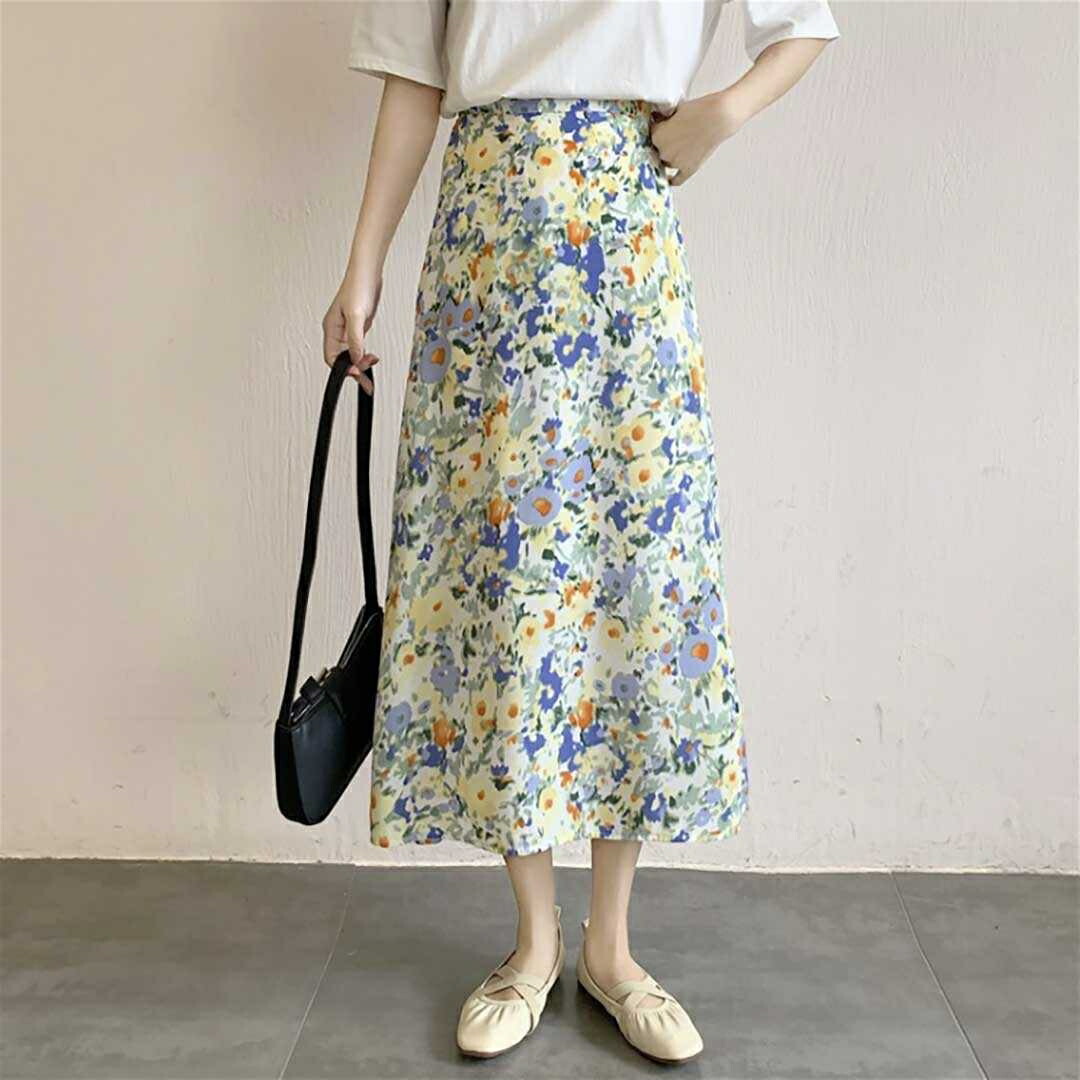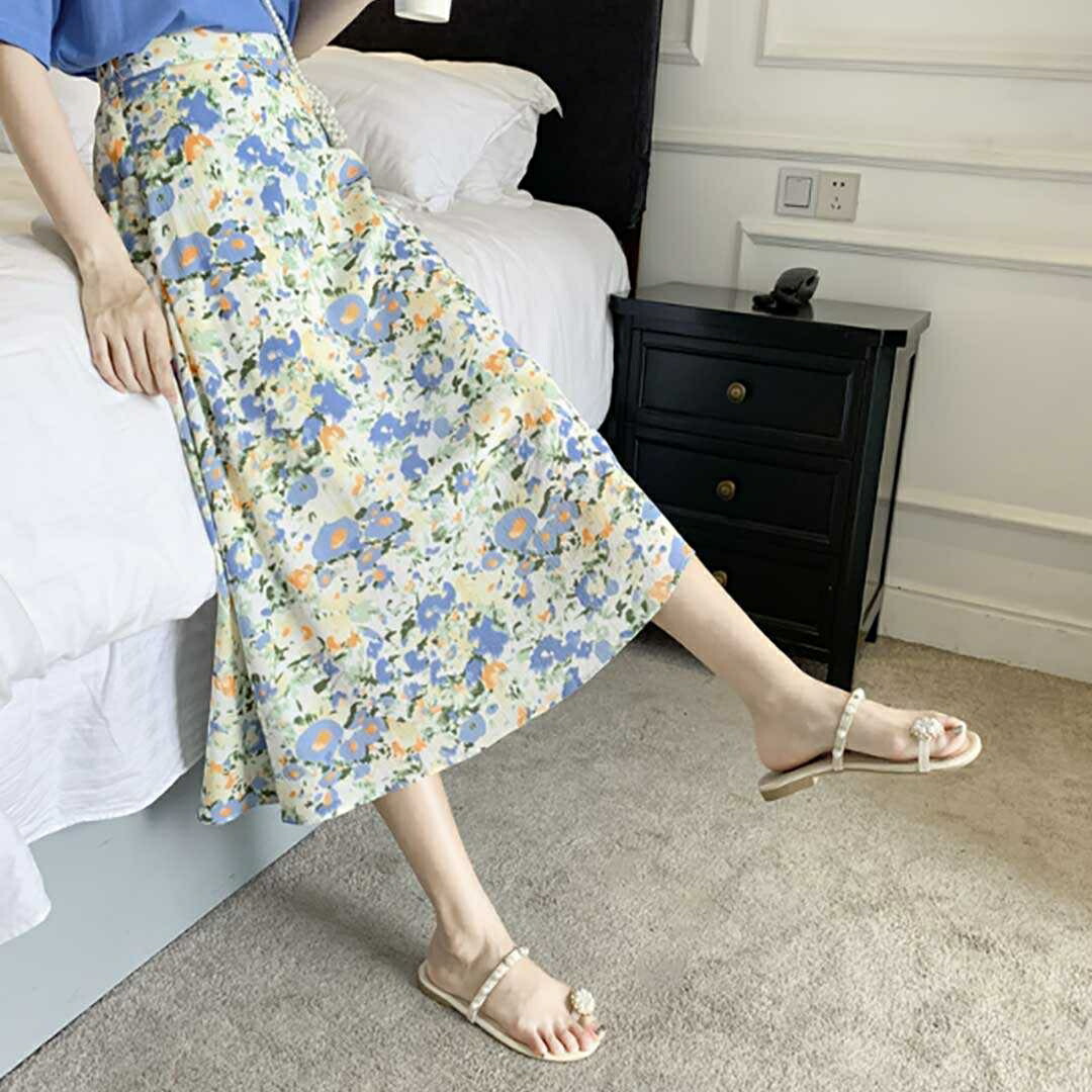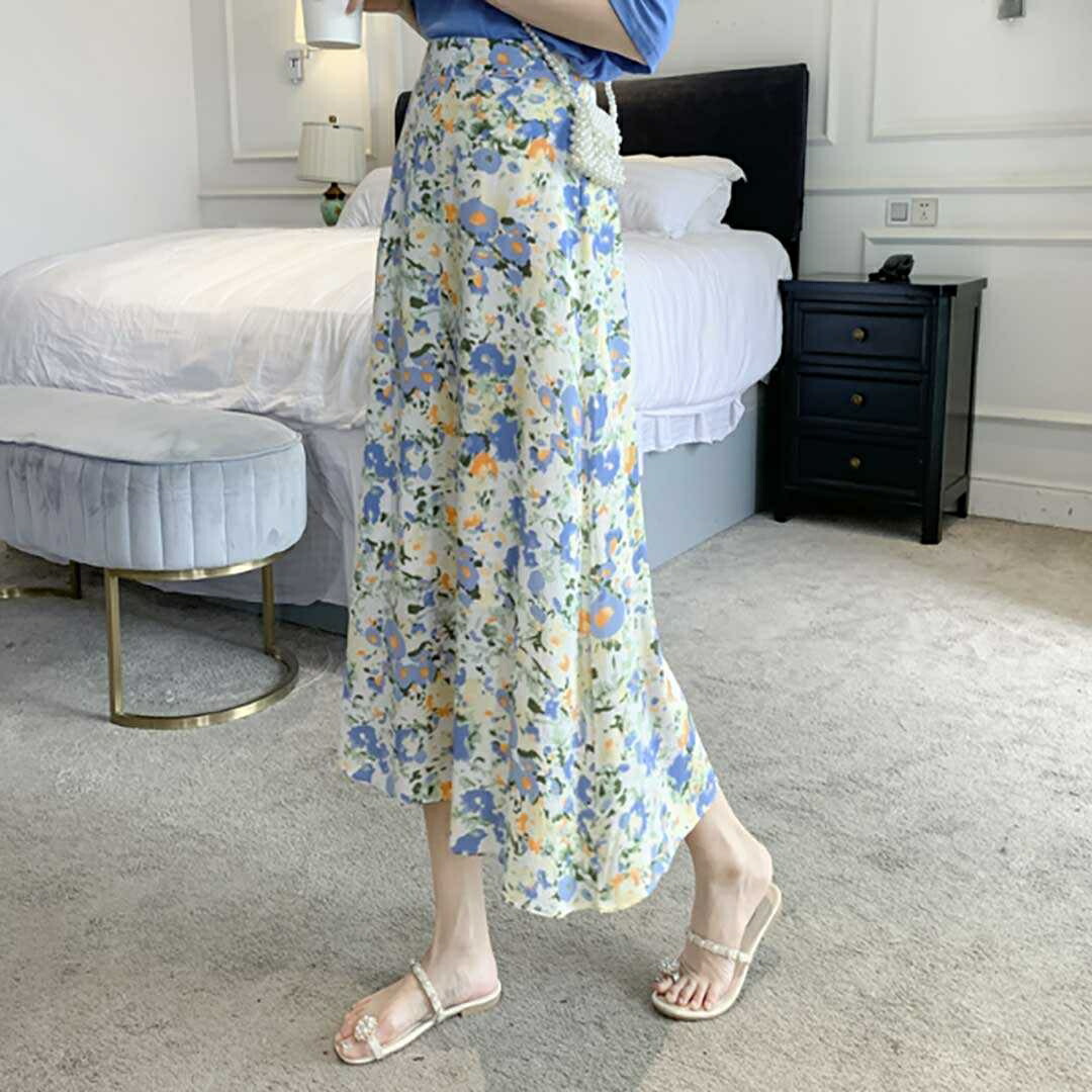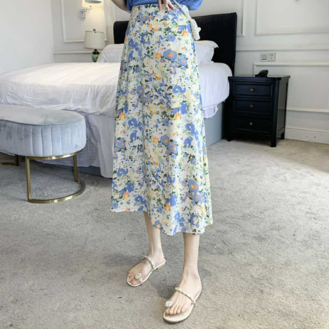 スカート 花柄ロング 青い花 韓国ファッション ロング丈 マキシ丈 おしゃれ 大人可愛い 小花柄 トレンド レトロ 韓国 ファッション プチプラ 花柄 フレアスカート レディース 原宿系 フェミニ
