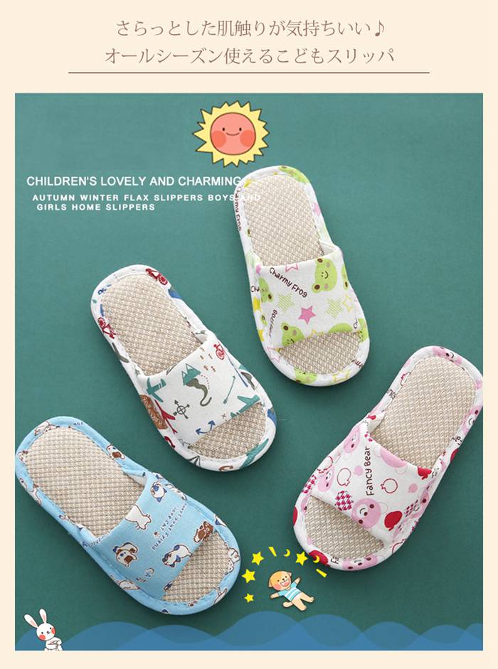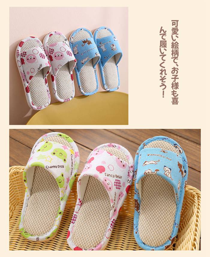 子供スリッパ 夏用 お揃い 綿麻 室内