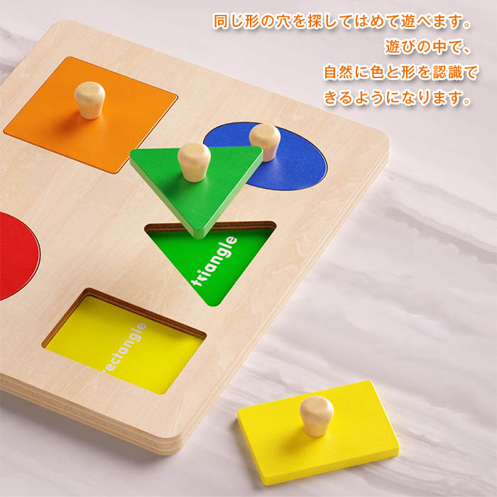 知育玩具 ペグパズル 型はめパズル ピックアップパズル カラフル 木のおもちゃ モンテッソーリ おもちゃ 型はめ 子供 パズル 知育 キッズ 誕生日プレゼント 木製パズル 色 形