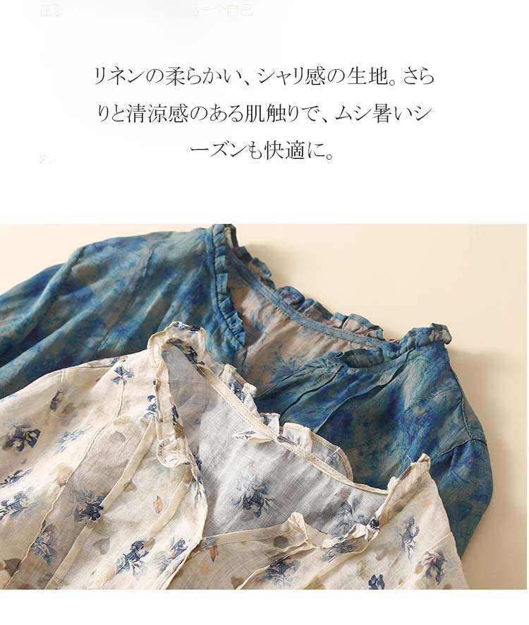 透け感のある軽く柔らかなリネン生地に、