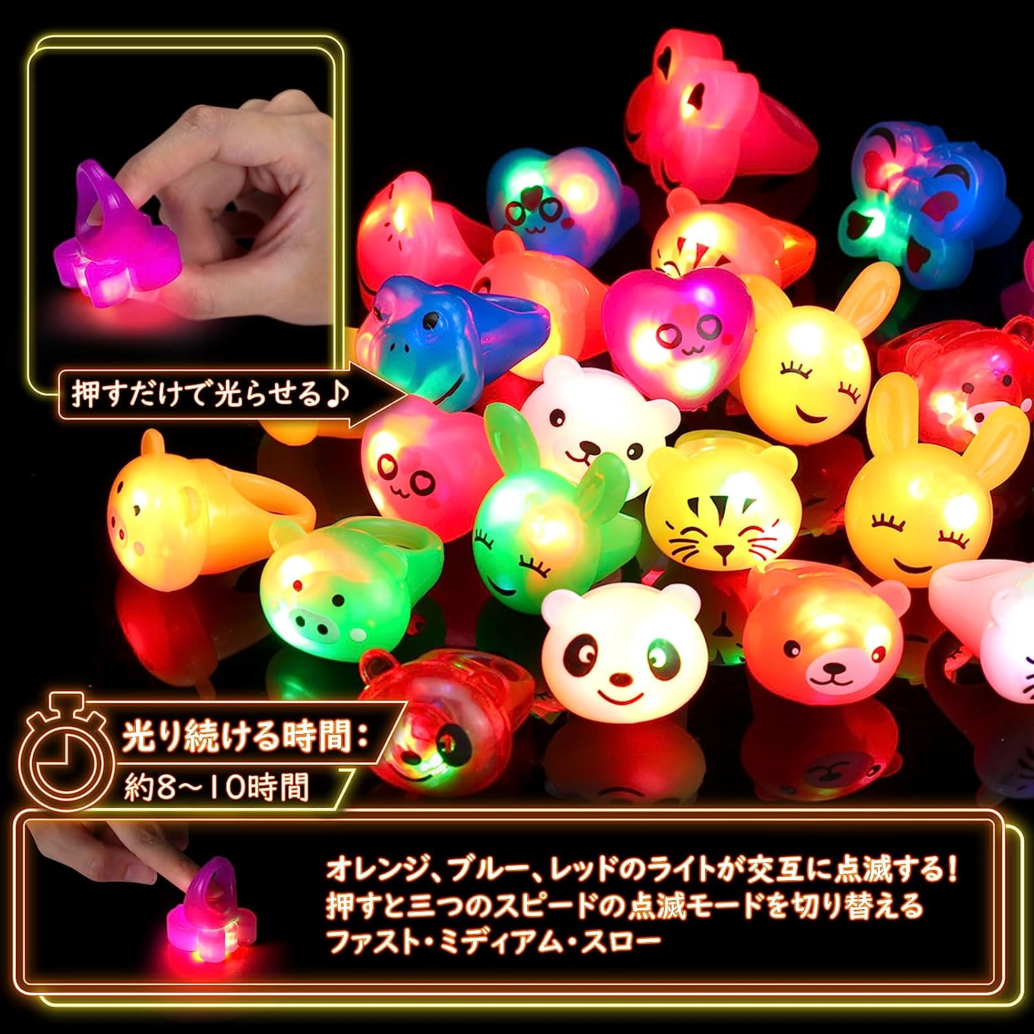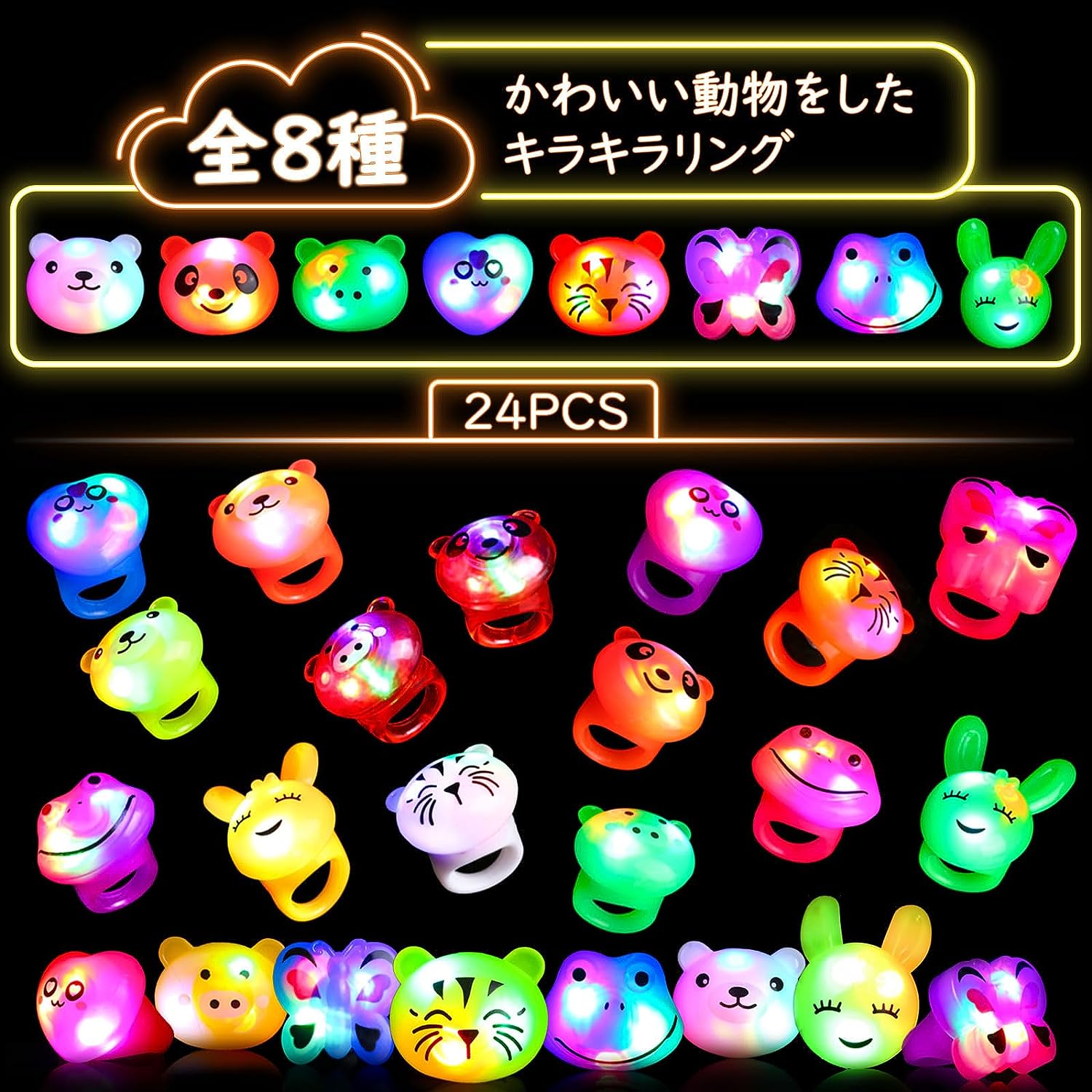 光る指輪 おもちゃ 24個入 動物 お