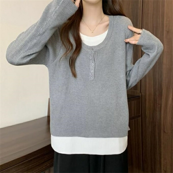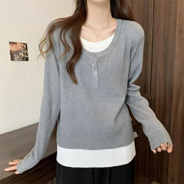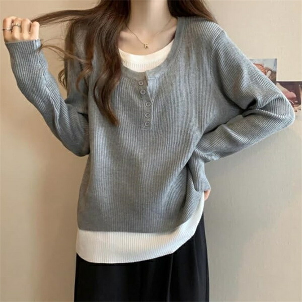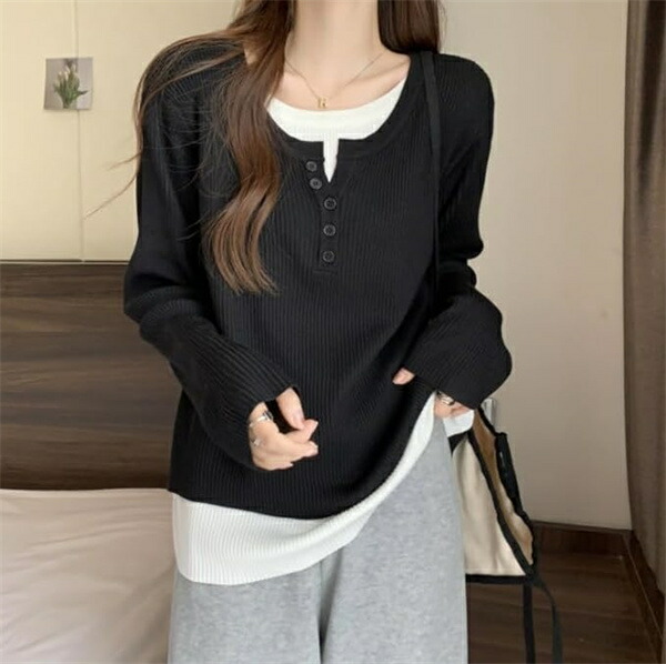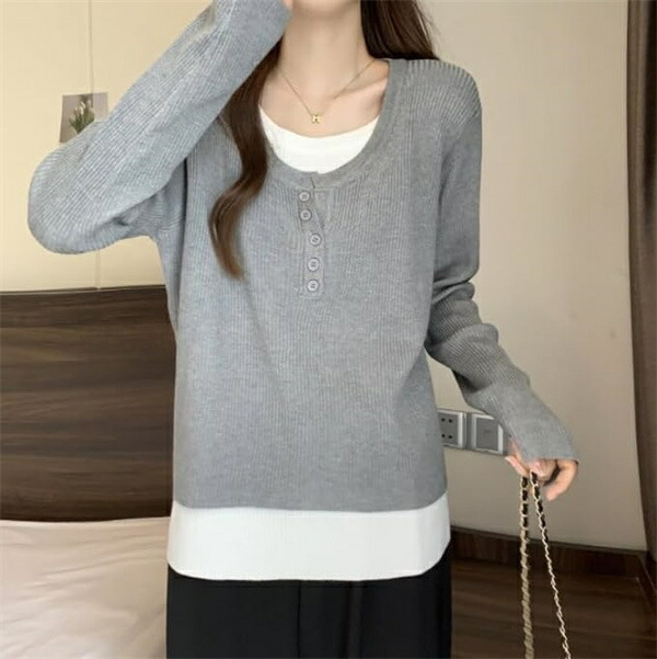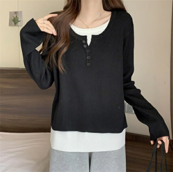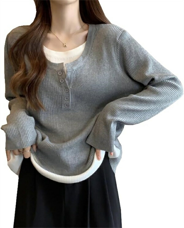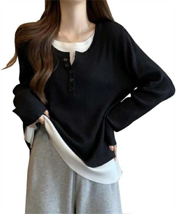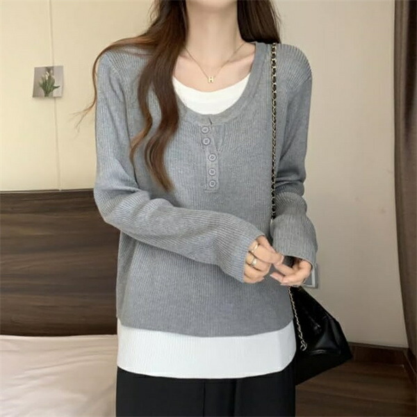tシャツレディース長袖 重ね着風カット