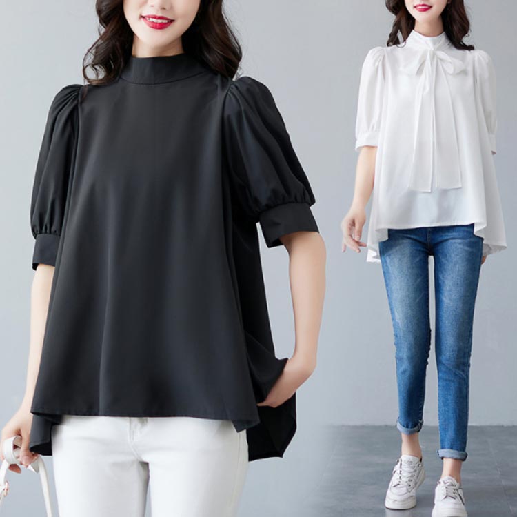 ボウタイ ブラウス バンドカラー 立ち