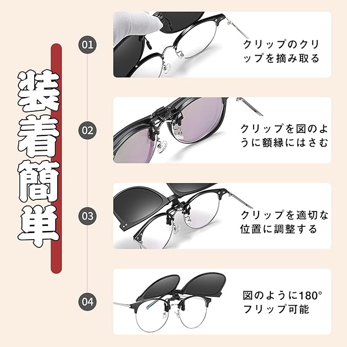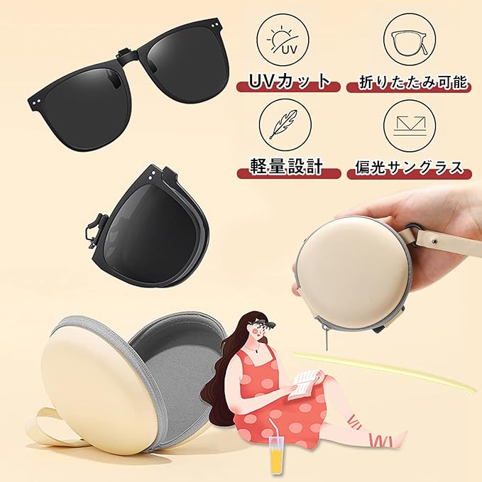 クリップオン サングラス 偏光 UVカット 折りたたみサングラス 偏光サングラス 眼鏡の上から 跳ね上げ式 オーバーサングラス 運転用 メンズ スポーツサングラス レディース