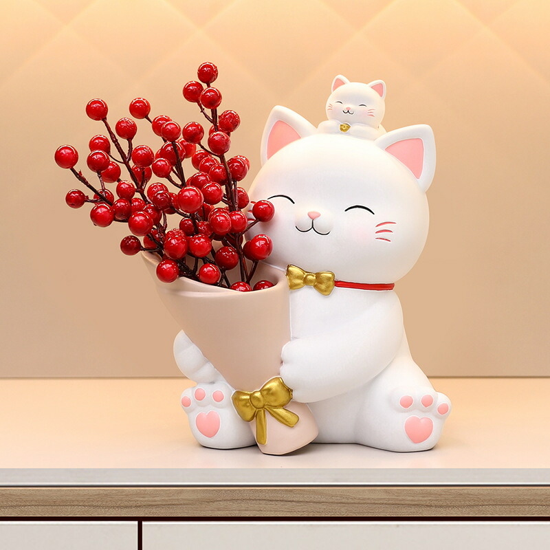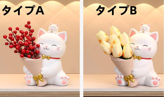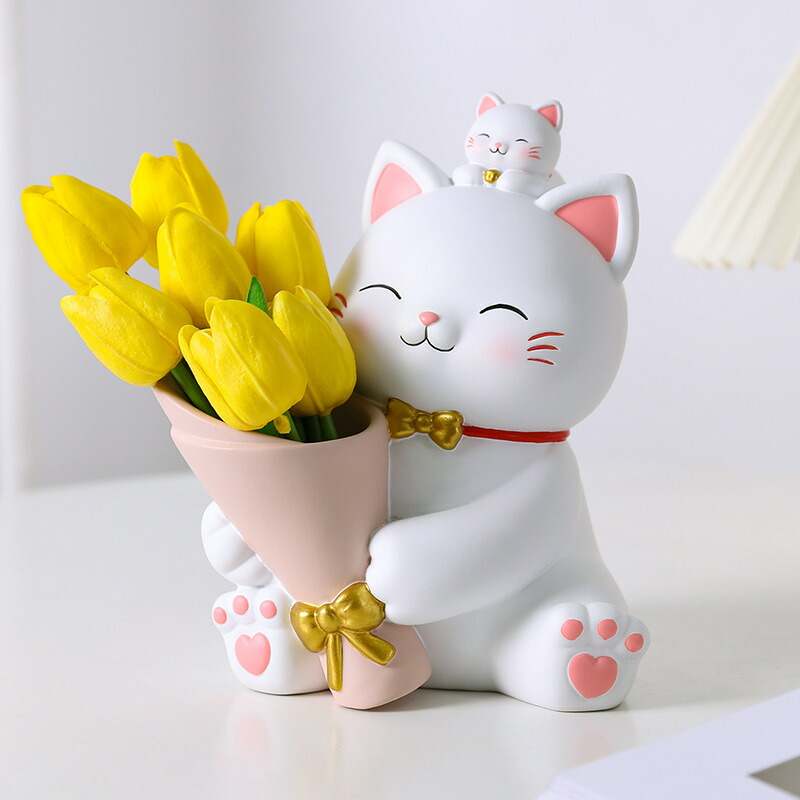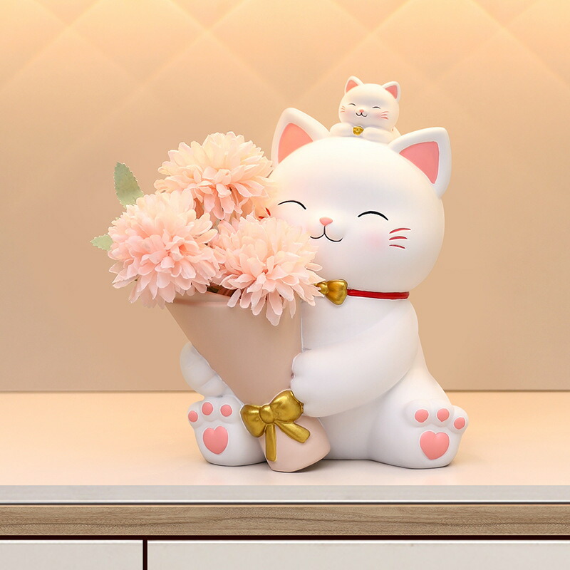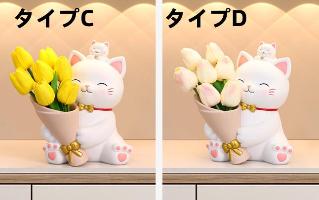 置き物 猫ちゃん 花動物像 彫刻装飾