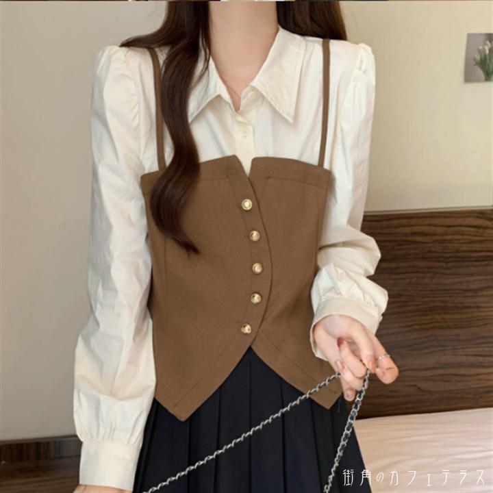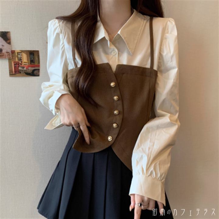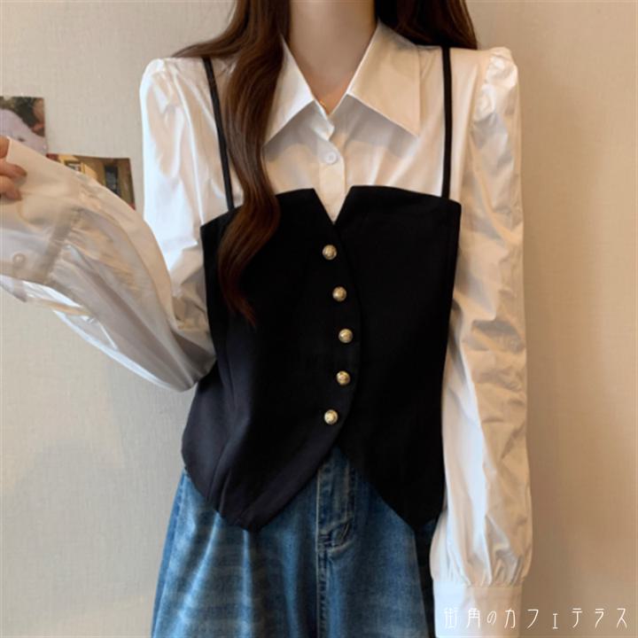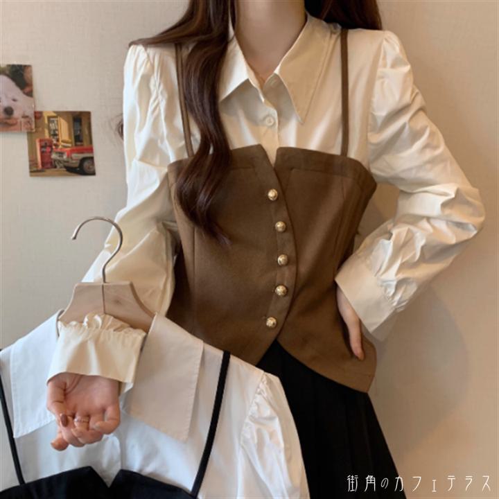 トップス 2色 ブラウス 袖あり 長袖