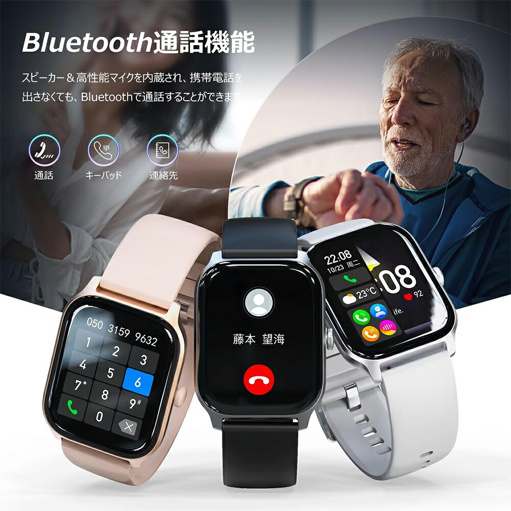 【進化したTFT2.02インチ大画面&多機能応用】スマートウォッチの外枠はハイエンドな亜鉛合金製で、耐久性と美しさを兼ね備えています。TFTハードスクリーンには、クリアで超安定性の動的ディスプレイ効果があり。革新的な水平変換分子配置に応じて、より強力で安定した液晶構造があります。2.02インチの大画面のため、視覚体験は従来の一般的な製品と比べて大幅に改善され、より鮮明な画像と、目に快適な体験を提供します。2.02の大画面を採用し、操作感もより繊細になりました。初心者でも使いやすいです。また、さまざまな機能が装備されています:音楽再生、活動量計、腕時計、歩数計、懐中電灯、天気予報、天気予報、目覚まし時計、遠隔撮影、スマホ探す、IP68、電卓、GPS運動記録、輝度調整、SOS コール、座りっぱなしリマインダーなど。
