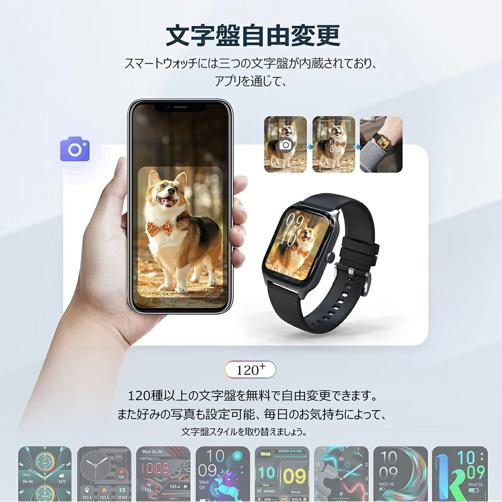 【文字盤自由設定&多種言語設定】独自の時計のスタイルの文字盤、専用アプリFitCloudProには200種類以上の文字盤を自由に切り替えることができ、お好みの写真を文字盤として使用することも可能です。毎日のお気持ちによって、文字盤スタイルを取り替えましょう。今回の商品は文字盤の言語を変更する機能を搭載しております。日本語のインターフェースが気に入らない場合は、英語または他の言語を選択できます。日本語/英語/韓国語など複数の言語に対応。付属品:スマートウォッチ 本体×1、充電ケーブル×1、日本語取説書×1