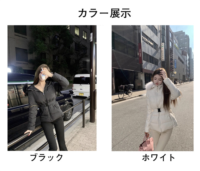 ベルト付き ロングダウンコート レディ