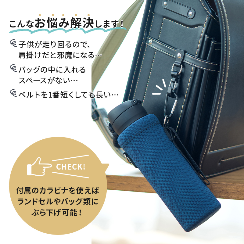 カラビナ付きでバッグ、リュックに吊り下