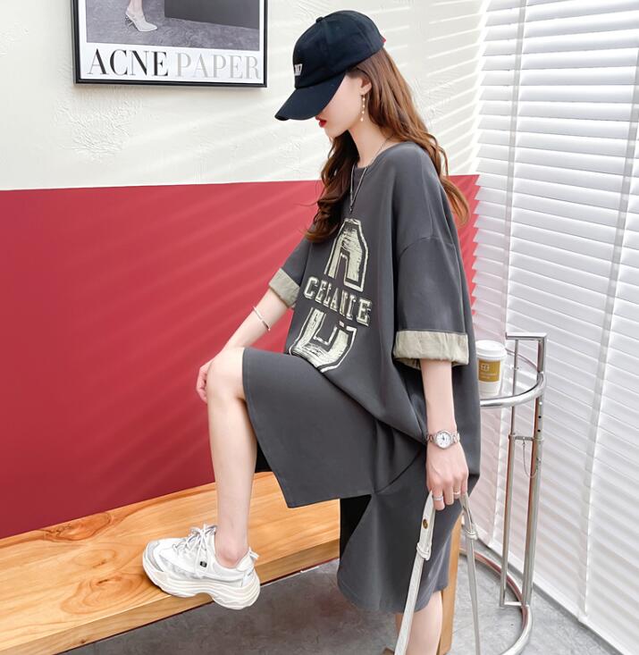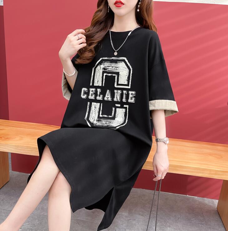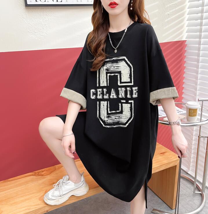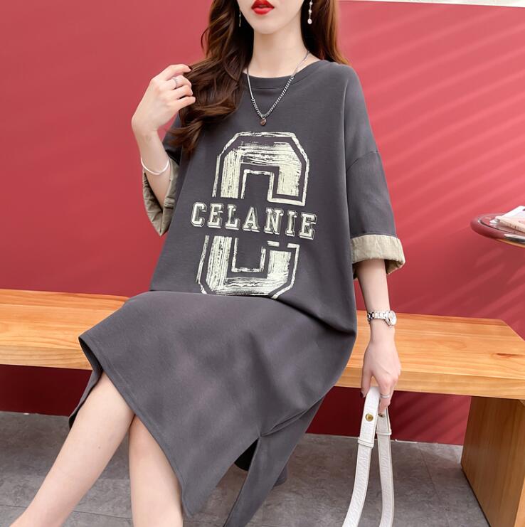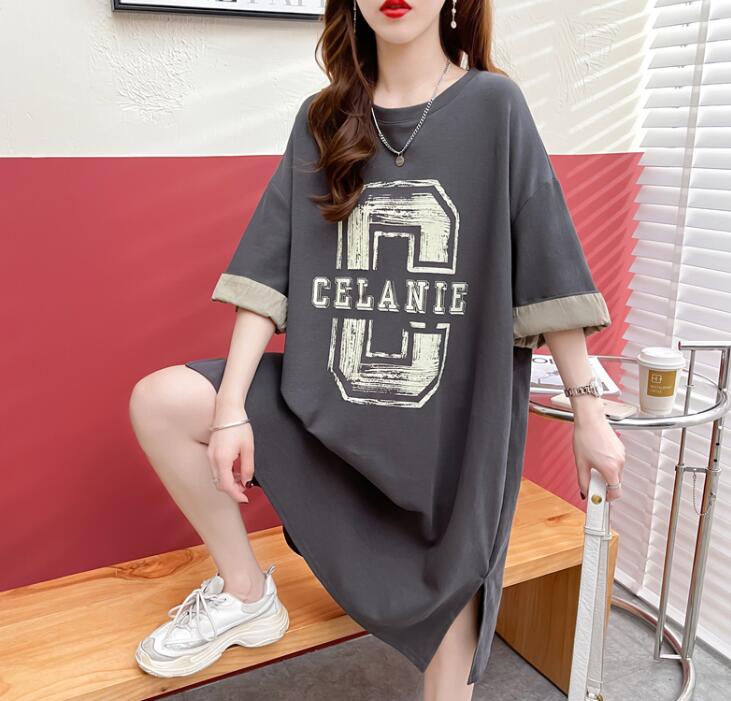 Tシャツレディース夏 半袖大きいサイズワンピースポケットロゴワンピTシャツワンピロングTシャツスリット膝丈スウエット部屋着ゆったり楽ちんML2L3L