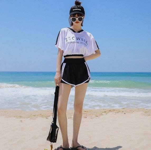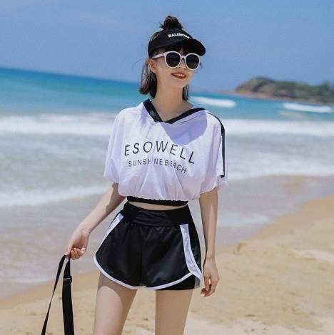 体型をカバーしながらも、おしゃれに演出。ハイウエストのショートパンツとメッシュトップス、ブラトップのセットで、夏の海やプールでのスタイルアップを叶える。MからXLサイズまで展開し、大人可愛いスタイルを楽しめます。