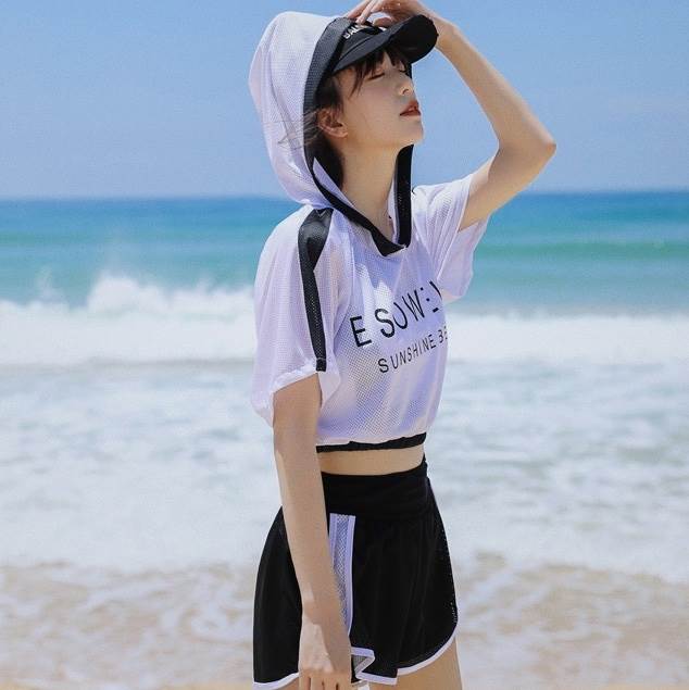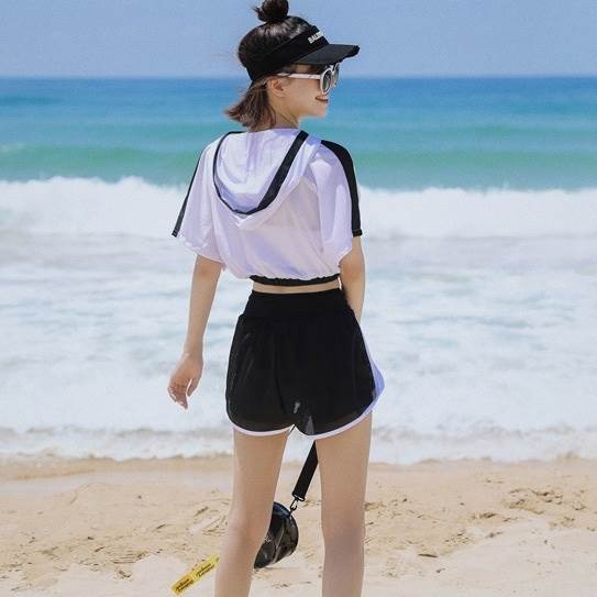 水着 スイムウェア タンキニ 体型カバー ショートパンツ 短パン セパレート 半袖 フード付き ハイウエスト メッシュ セット スリーピース 上下セット 3点セット かわいい 大人可愛い シンプル カジュアル ナチュラル おしゃれ お洒落 キュート ガーリー クール モード系 スタイリッシュ かっこいい マニッシュ メンズライク トレンド ベーシック ヘルシー ロゴ 旅行 プール 夏 海 スポーツ トレーニング 美脚 脚長 着痩せ スタイルアップ インスタ映え こなれ感 M L XL ホワイト 白