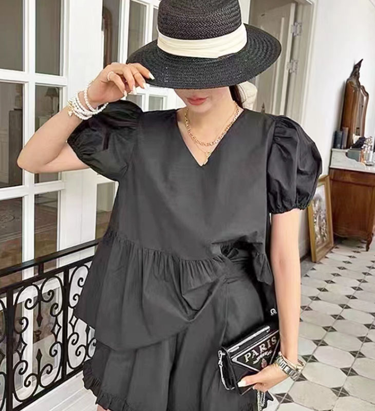 シアースリーブ ドッキングシャツ ボウタイシャツブラウス