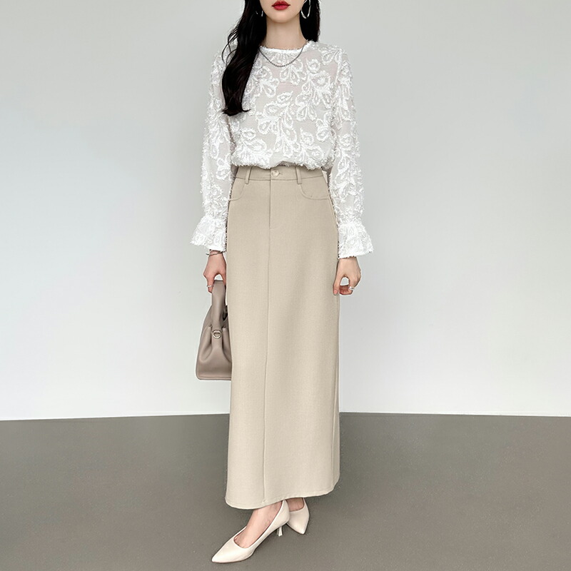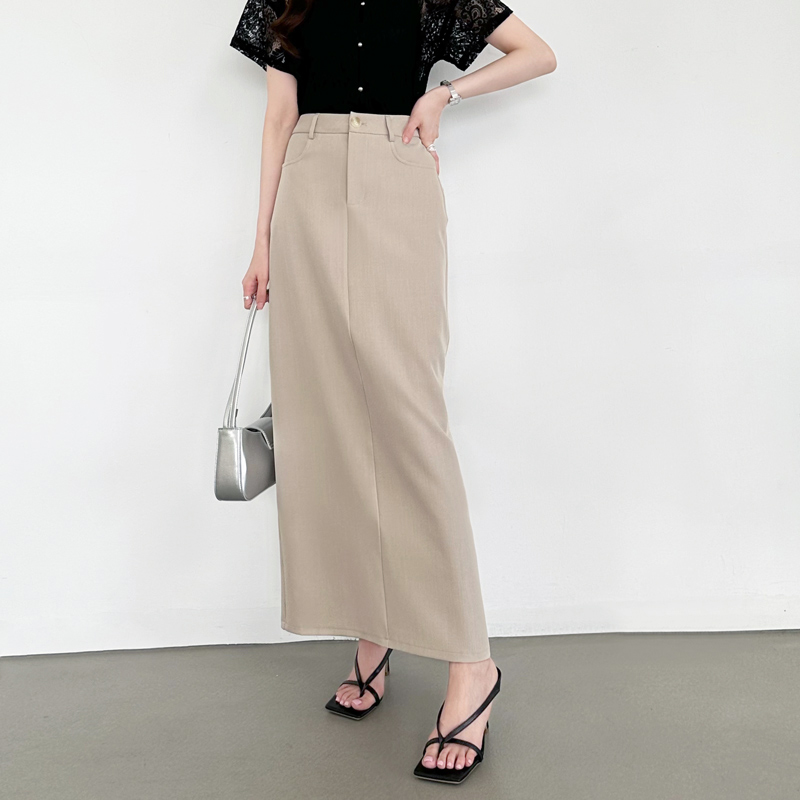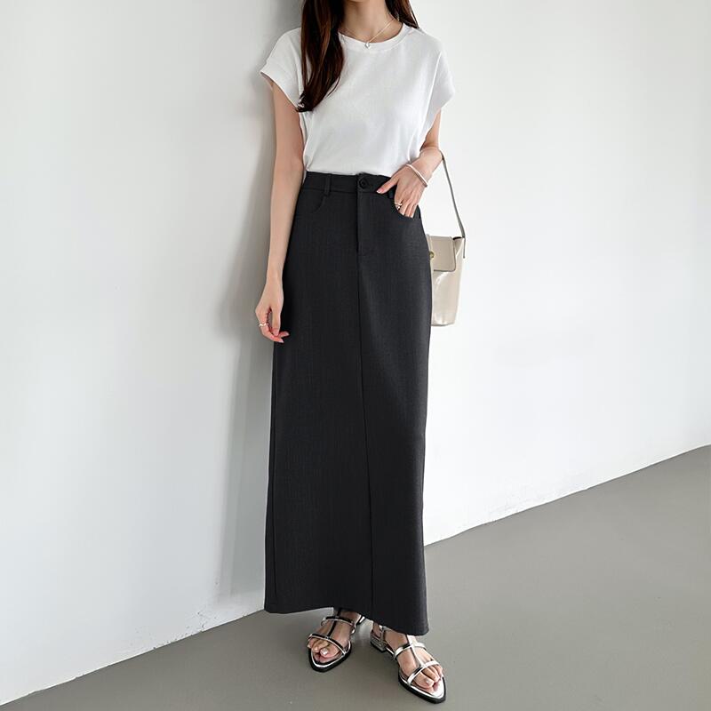 6冠達成/ 選べる2丈 アンクル丈 ロング丈 S M L ロングナロースカート ロングタイトスカート スリット入り ストレートスカート Iライン ポケット付き 無地 脚長 美脚 細見え