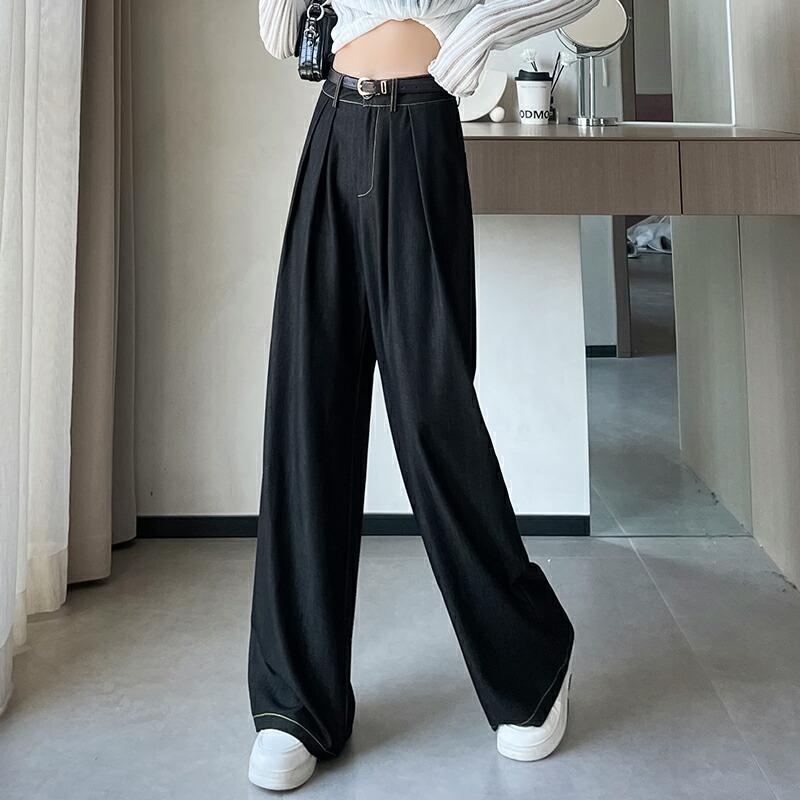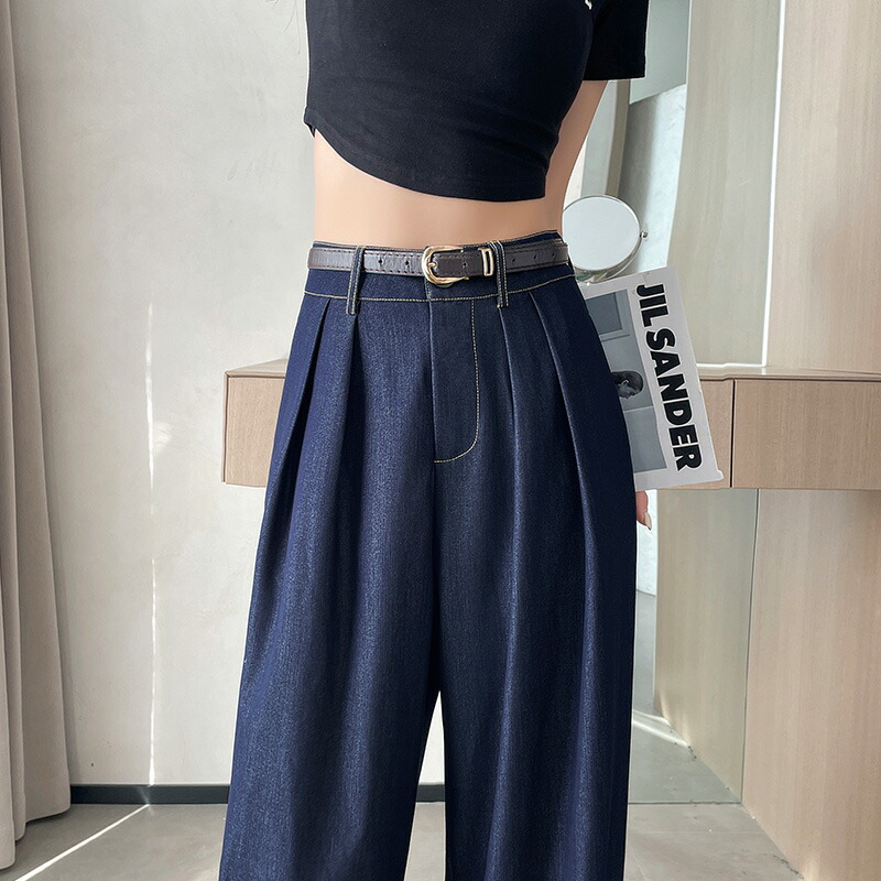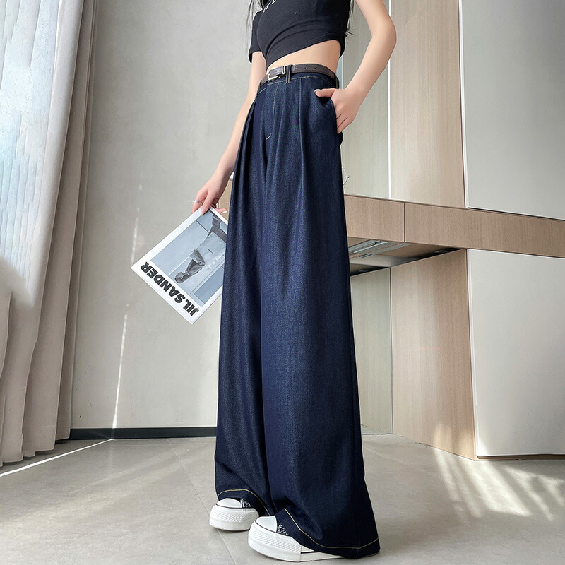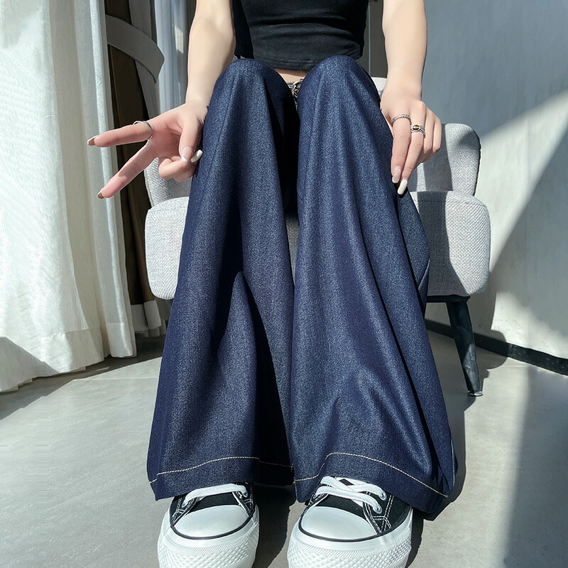 選べる2種丈 ワイドデニムパンツ アンクル丈 レギュラー丈 S M Lレディースファッション ボトムス パンツ