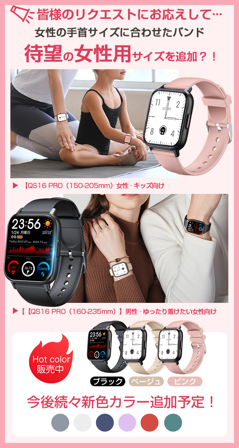 型番・スマートウォッチQS16 PROディスプレイサイズ・1.85インチ防水レベル・3ATMバッテリー・260mAh対応機種iPhone各種:
