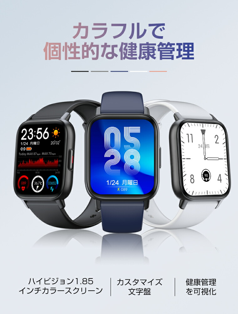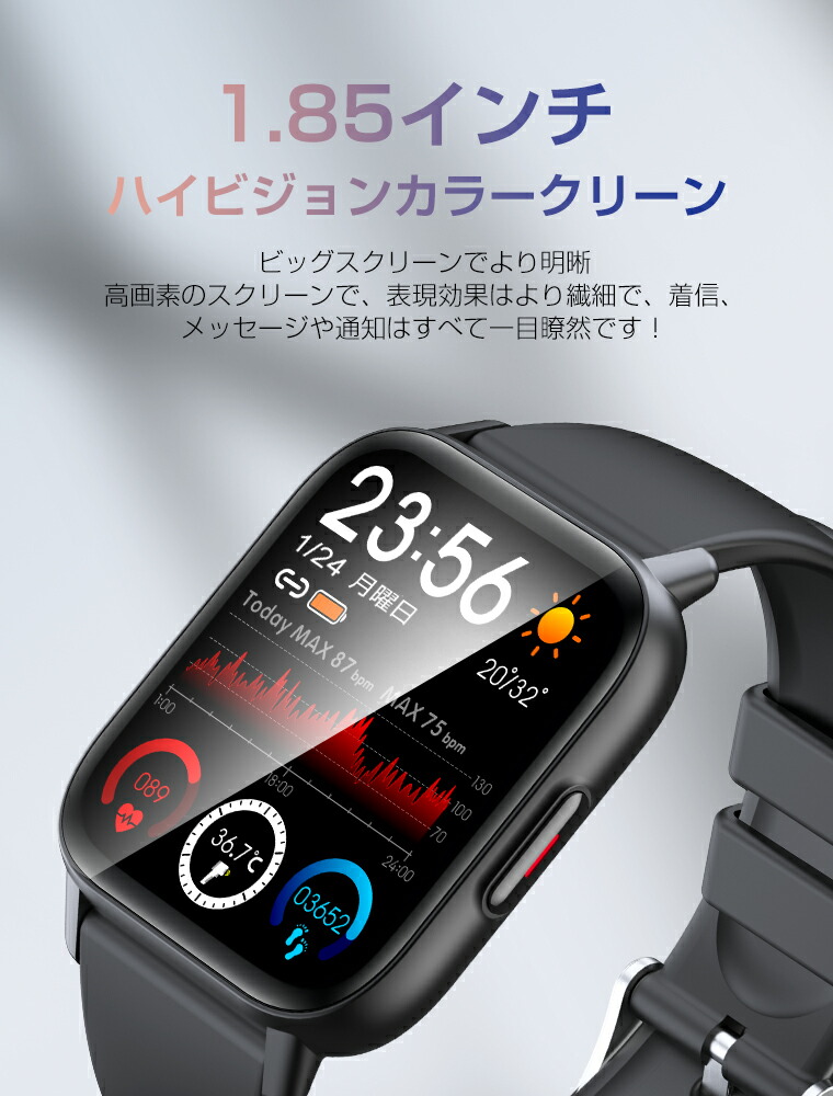 スマートウォッチ 24種類運動モード 1.85インチディスプレイ 3ATM防水 スマホ探し 天気予報 小さめLine Facebook Instagram対応 日本語説明書 バレンタイン ギフト プレ