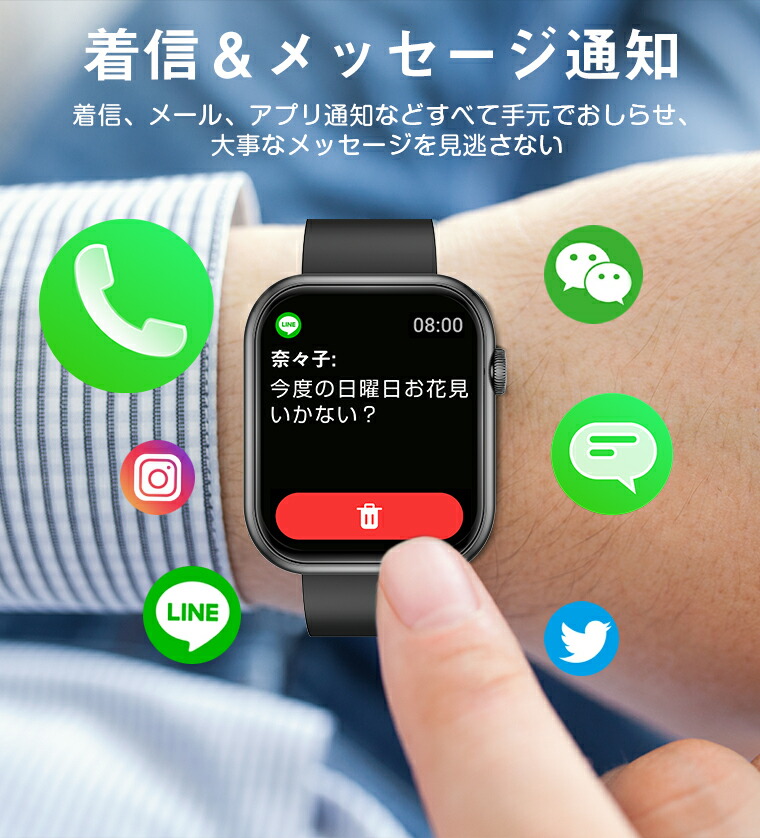 スマートウォッチ 100+種類運動モード 1.96インチディスプレイ IP67防水 天気予報 スマホ探し 日本語説明書 バレンタイン ギフト プレゼント