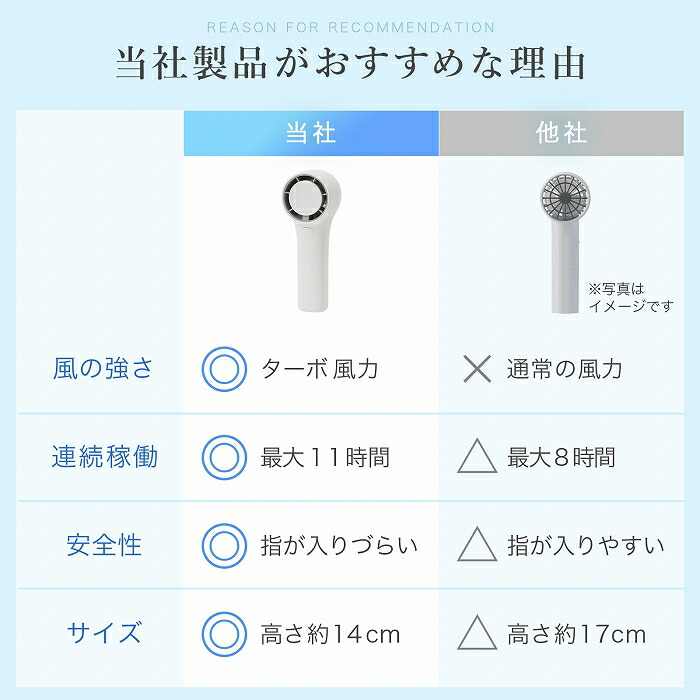 ・手のひらサイズのコンパクトさで、持ち運びや収納が簡単、携帯性に優れた手持ち扇風機です。