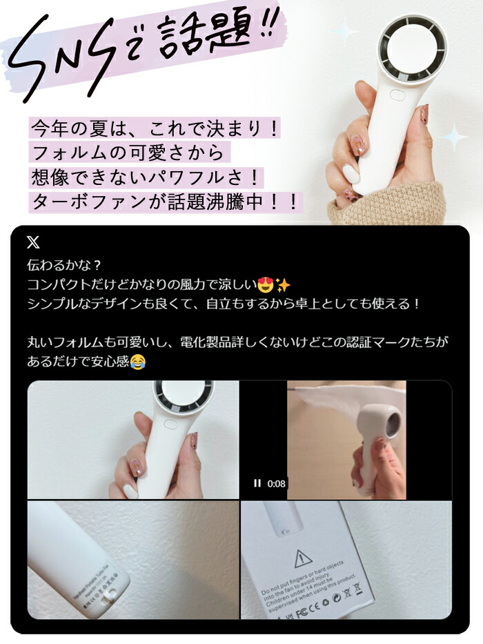 ターボ風力のコンパクトハンディ扇風機。持ち運びに便利なサイズで、強力な風量を送ります。USB充電可能で、屋外やオフィスで快適な風をお楽しみいただけます。