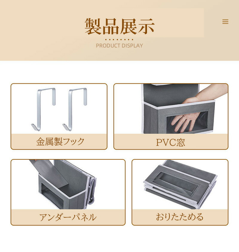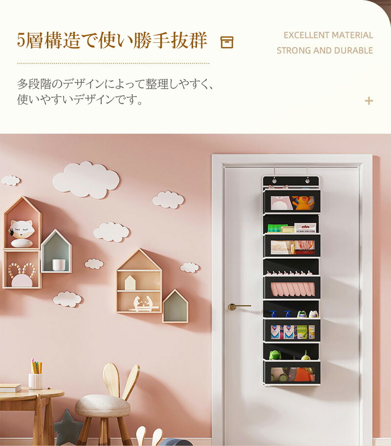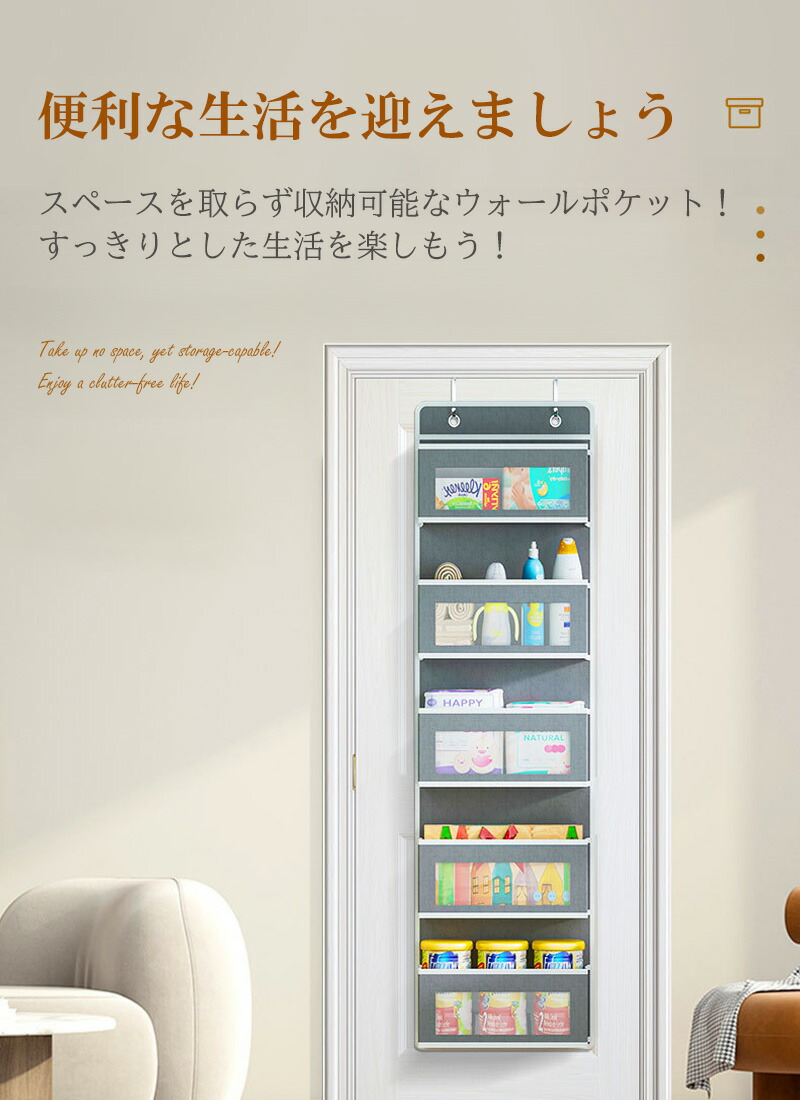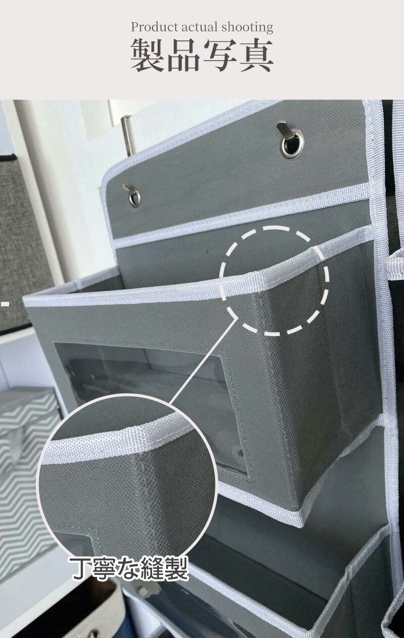 ウォールポケット 収納 吊り下げ ドア掛け 大容量 縦 おしゃれ ハンガー 壁掛け収納 ポケット 北欧 不織布 マチ付き ブラック 雑貨 小物入れ 布 透明窓 中身が見え 型崩れにくい 折りたためる