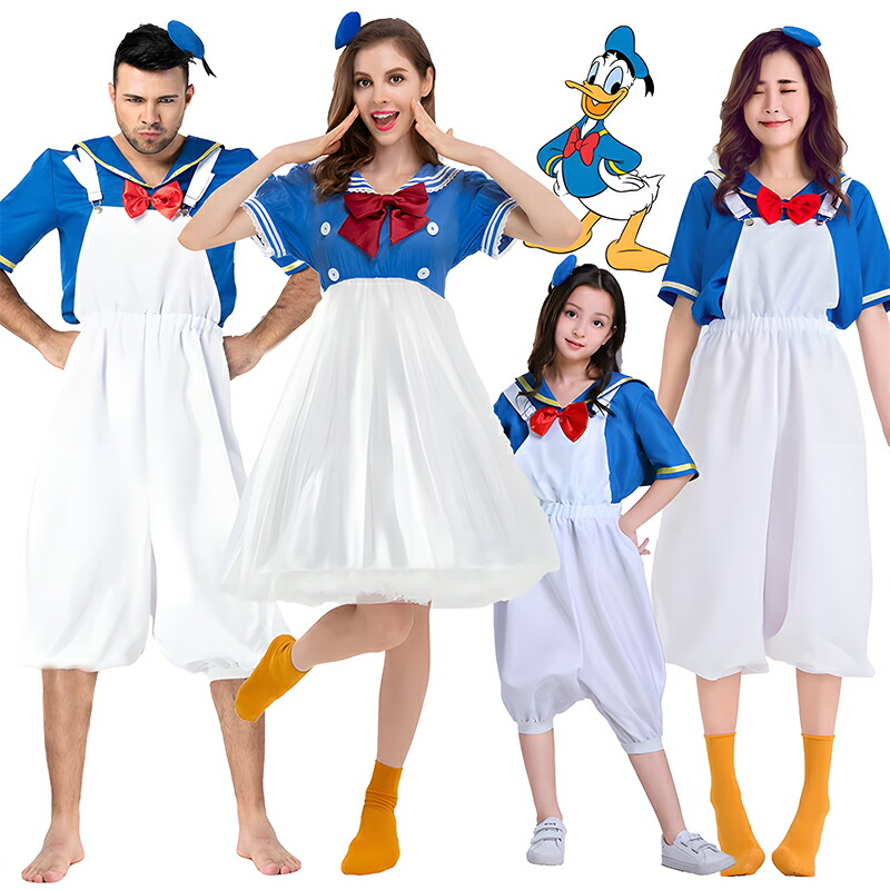 \親子お揃い カップル/ コスプレ衣装 アヒルちゃん 海軍 仮装 ハロウィン コスプレ ドナルドダック コスチュームセーラー服 アヒル ダック衣装 大人 レディース 大きいサイズ