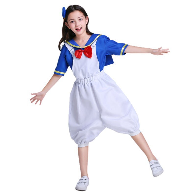 【ディズニー風】アニメ風のコスチューム、ダックを原型にした海軍スタイルのセーラー学生コスチュームです!服は見た目もデザインもとてもキュートで、黄色い靴下はアヒルの前足のようで、この服を着るとまるでドナルドダックに変身したようです!(黄色い靴下は付属無し、別売り)