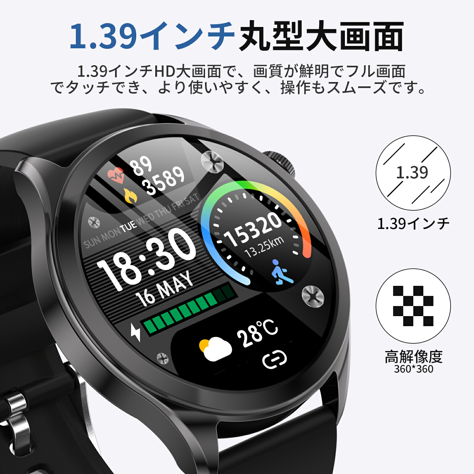 リニューアル登場 スマートウォッチ Bluetooth5.3 通話機能 レディース 歩数計 時計 カロリー消費 睡眠 アラーム 距離 天気予報 音楽制御 日本語 誕生日 おすすめ プレゼント