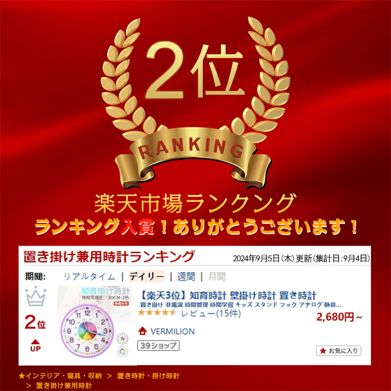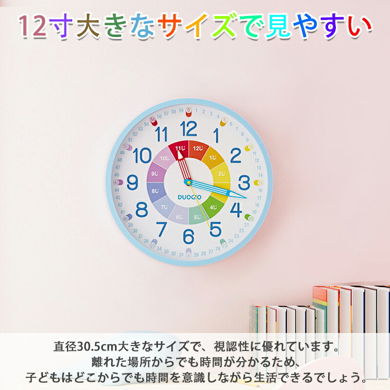 【楽天2位】知育時計 壁掛け時計 置き時計 置き掛け 非電波 時間管理 時間学習 キッズ スタンド フック アナログ 静音タイプ 可愛 見やすい 幼児 学習用 勉強用 子供 子ども部屋 知育 贈り物 プレゼント 小学校 30CM 12寸 3歳 4歳 5歳 6歳 7歳 置き掛け兼用時計