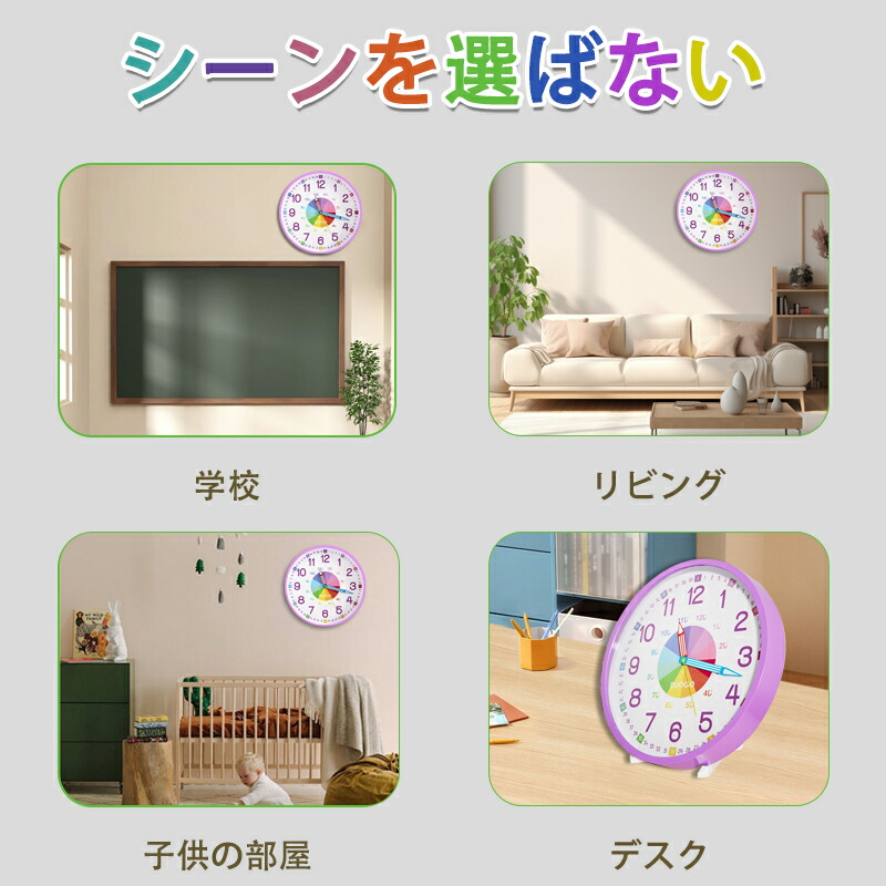 知育時計だけでなく、インテリアのアクセントとしも、お部屋を素敵に引き立てできます。教室、キッチン、リビング、玄関、ベッドルーム、居間、書斎、図書館、オフィスなど、様々な場所にふさわしい、シーンを選ばず馴染みます。また、新築祝いや引越し祝い、結婚祝い、お誕生日祝いなどのプレゼントにもおすすめで