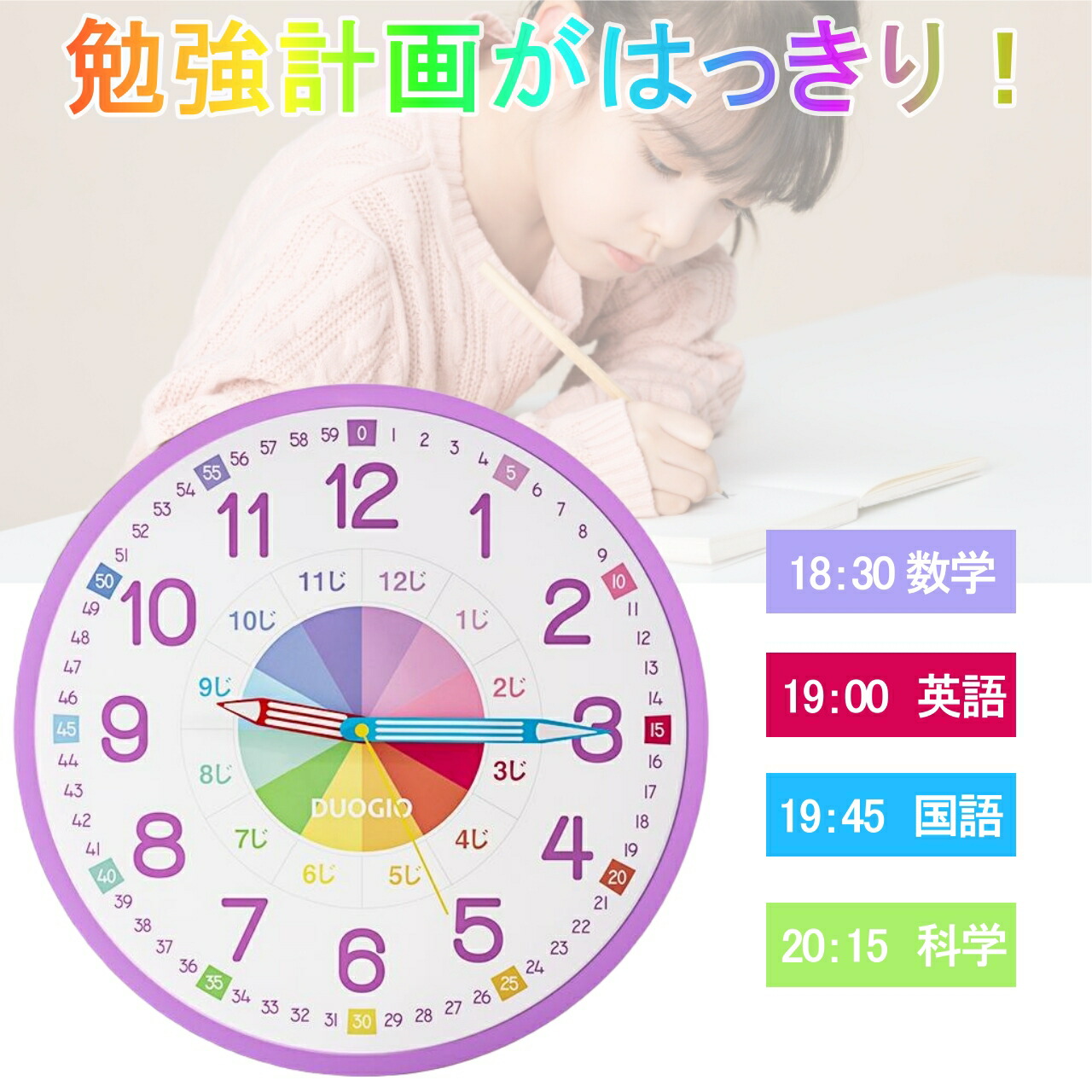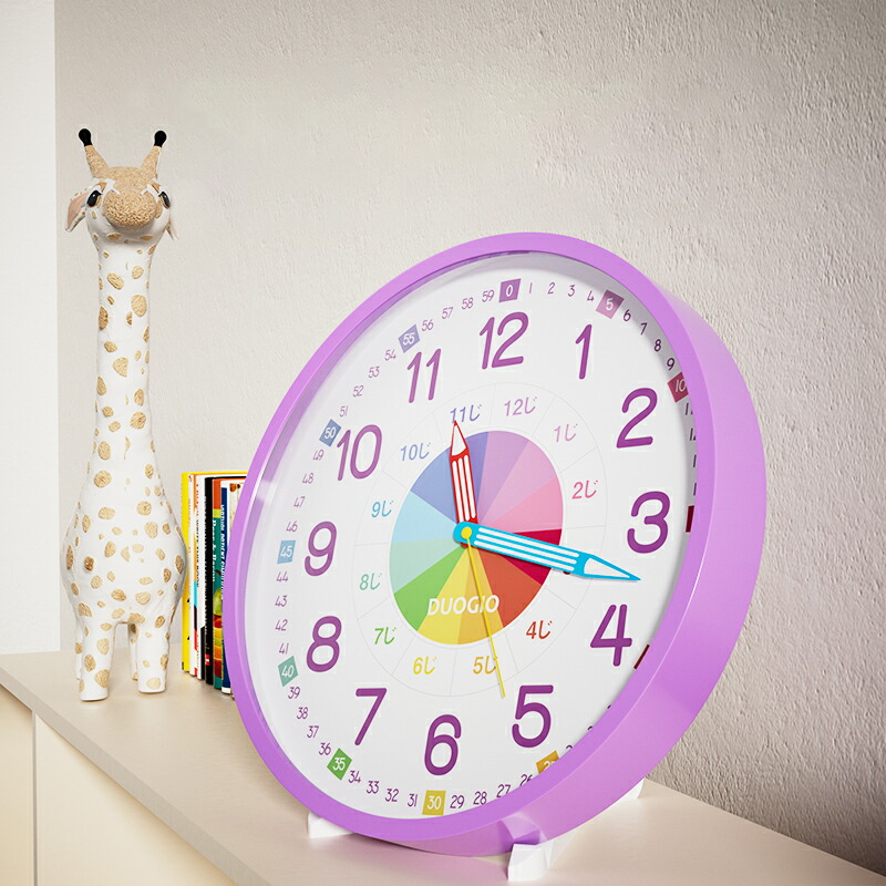DUOGIO 送料無料 カラーで分かりやすい!知育時計 置き掛け両用時計 12寸 12インチ スタンド付き Time リビング学習 壁掛け時計 おしゃれ クロック プレゼント 置時計